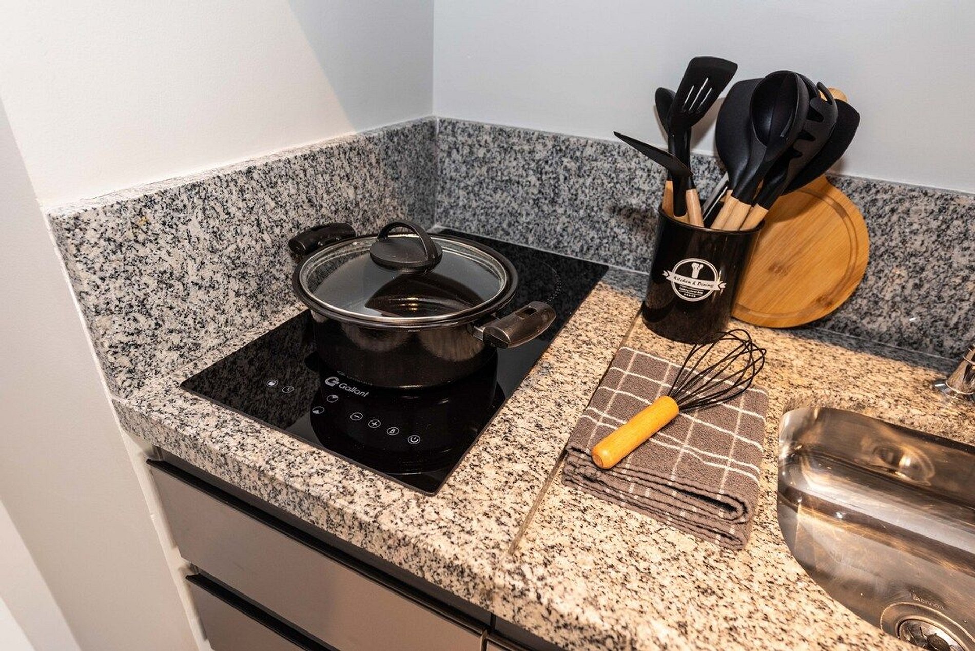 -Cozinha Completa: Incluindo louças, cooktop, air-fryer, micro-ondas, liquidificador e todos os utensílios necessários.