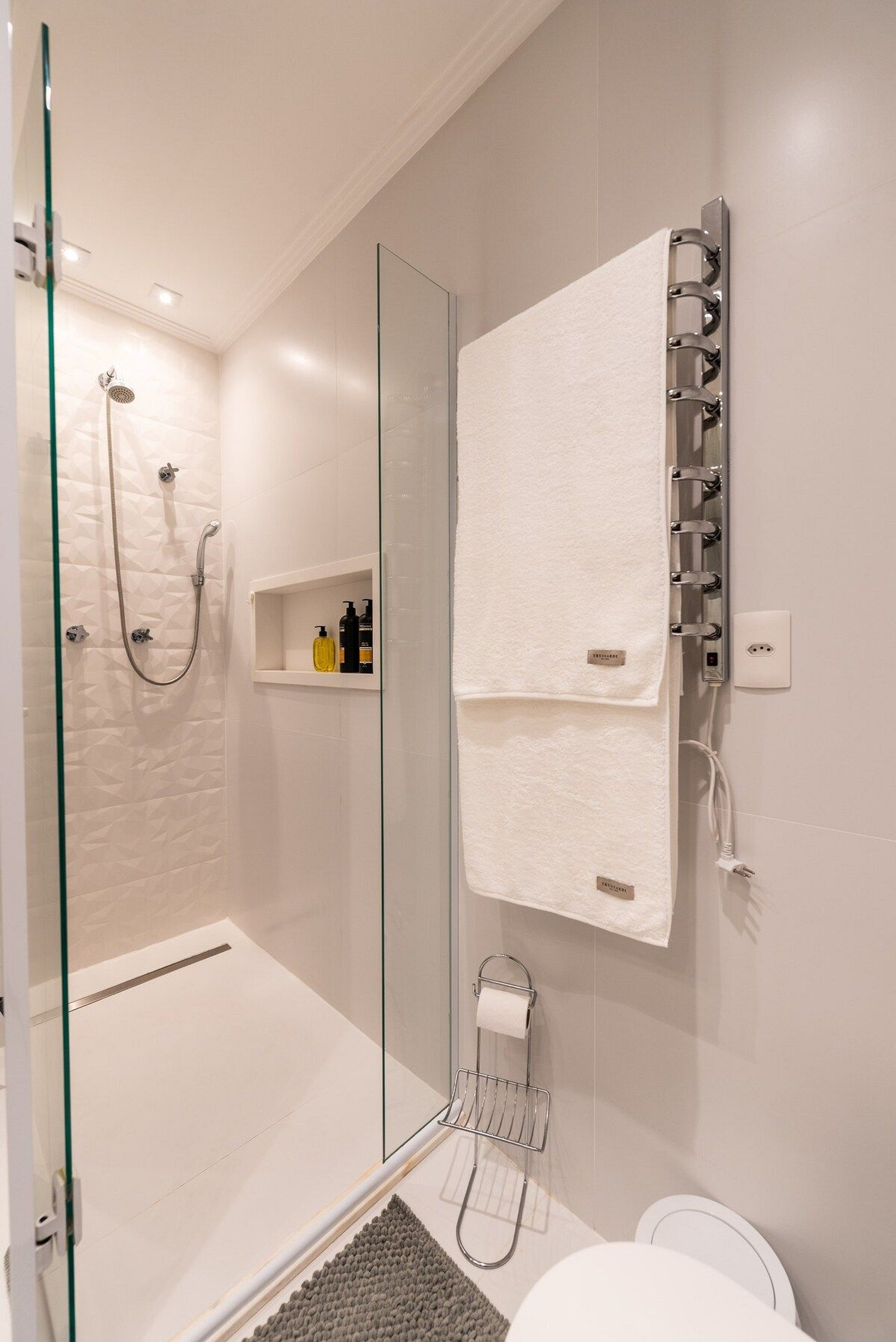 Este apartamento representa o auge do estilo, modernidade e conforto, sendo perfeito para quem deseja explorar o melhor de Santos. Cada detalhe foi cuidadosamente planejado para criar um ambiente contemporâneo e acolhedor, garantindo uma estadia repleta de bem-estar e sofisticação. • Ambiente Moderno e Aconchegante, combinando design contemporâneo e conforto, criando um espaço ideal para relaxar após um dia de praia. • Cama e Lençóis Confortáveis de alta qualidade para garantir noites de sono tranquilas. • Janelas com persianas motorizadas, manuseio por controle remoto. • Máquina de lavar roupa e secar. • Cozinha Equipada: Com fogão, geladeira, micro-ondas e todos os utensílios necessários para preparar suas refeições favoritas. • Espaço para Trabalho e Refeições Rápidas em uma bancada confortável, e uma mesa, para quem precisa trabalhar remotamente. • Banheiro moderno e espaçoso com chuveiro de alta pressão, além de um lavabo. • Check-in fácil e descomplicado, com acesso pela portaria do prédio.