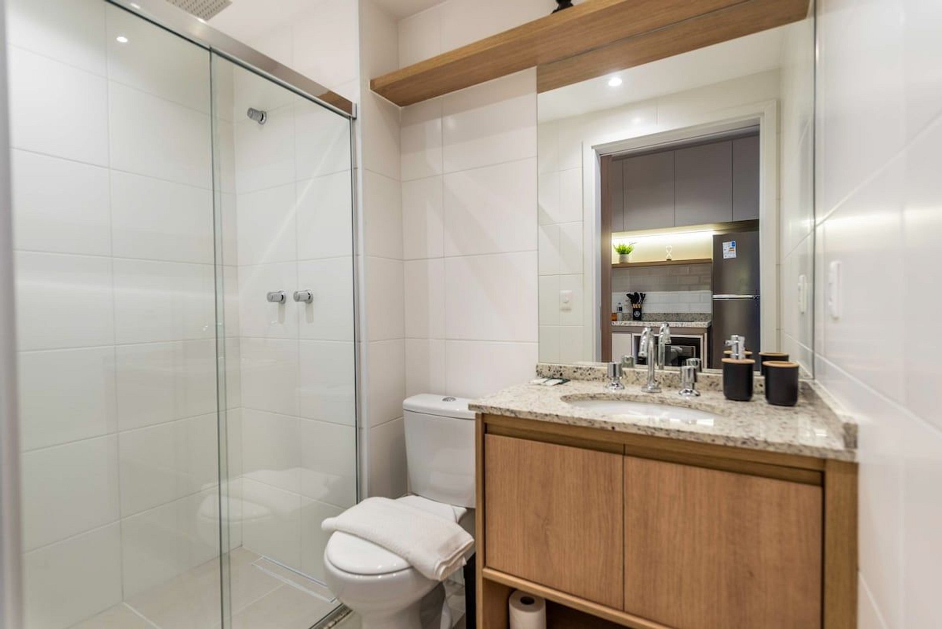 Quarto: •Moderno e recém-decorado •Cama queen confortável •Roupa de cama de alta qualidade Banheiro: •Amplo e moderno •Ótimo chuveiro •Toalhas macias e confortáveis •Secador de cabelo Cozinha: •Completa e funcional •Utensílios necessários para preparar refeições Área de Lazer: •TV disponível •Internet de alta velocidade para relaxamento e entretenimento Ambiente Geral: •Aconchegante e cuidadosamente planejado •Oferece equilíbrio entre conforto e conveniência •Ferro de passar e tábua incluídos