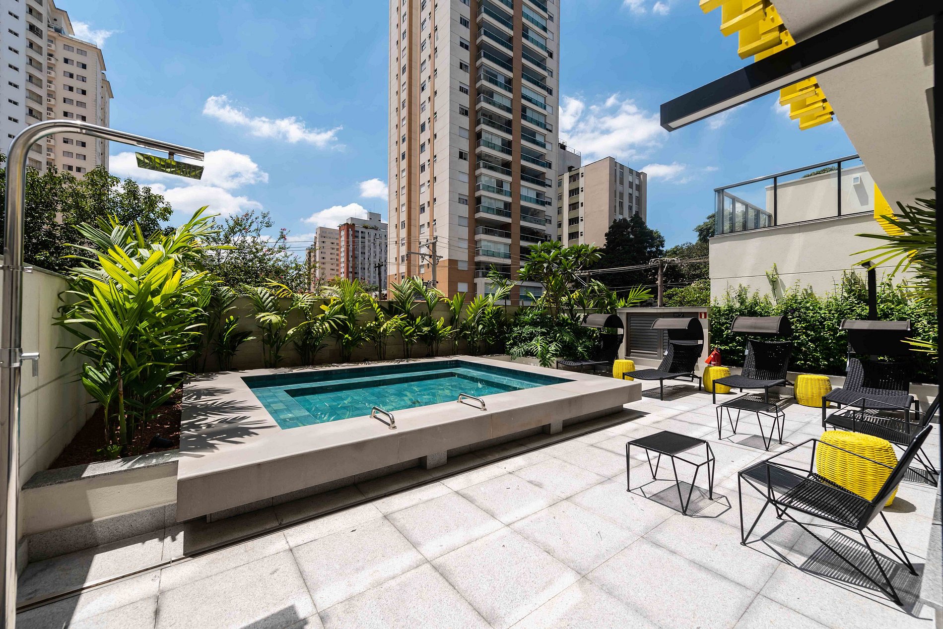 Durante sua estadia, o hóspede tem acesso a facilidades do prédio, como piscina e academia.