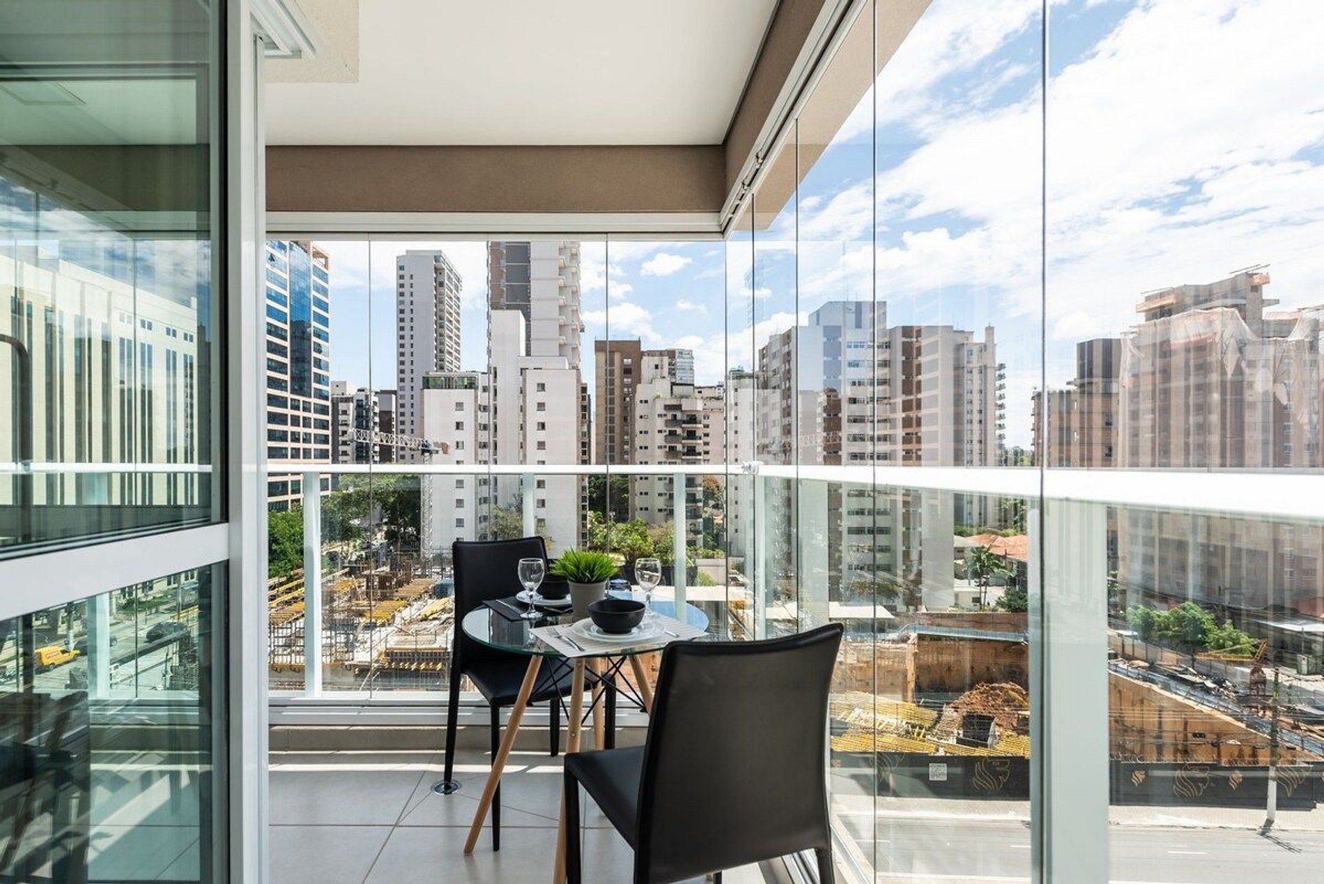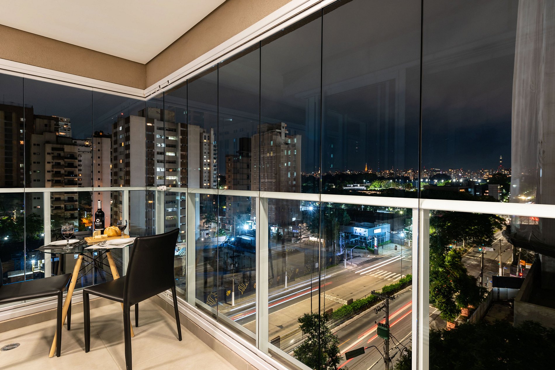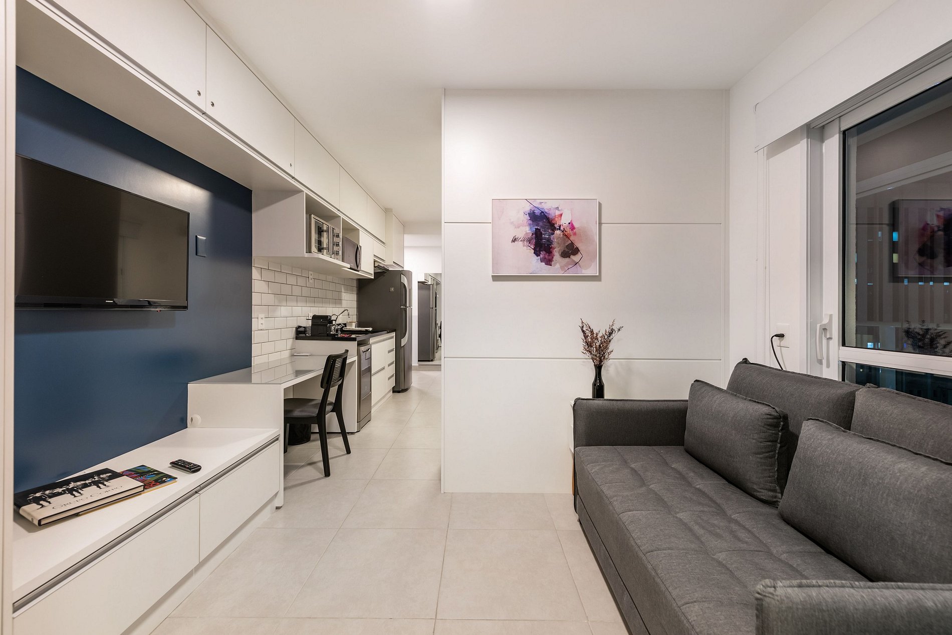 Studio moderno e completo com vista privilegiada da cidade.