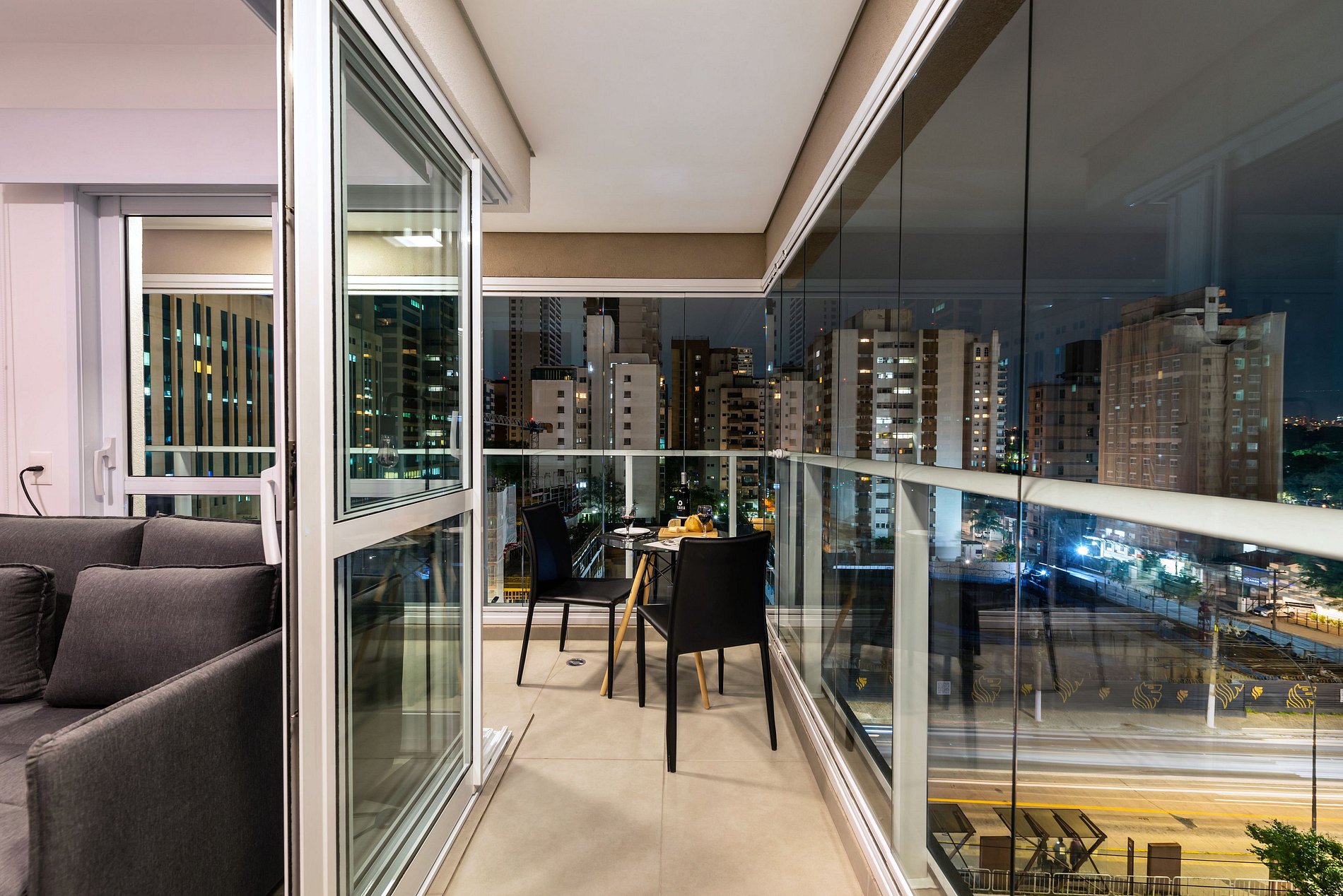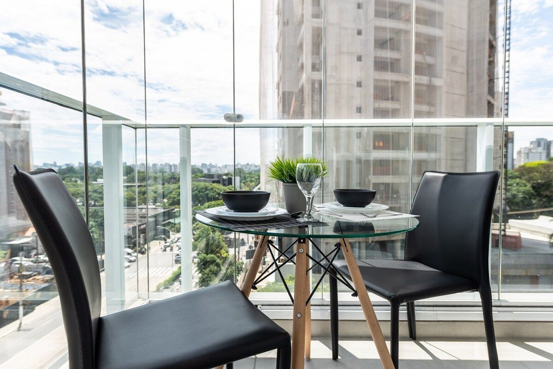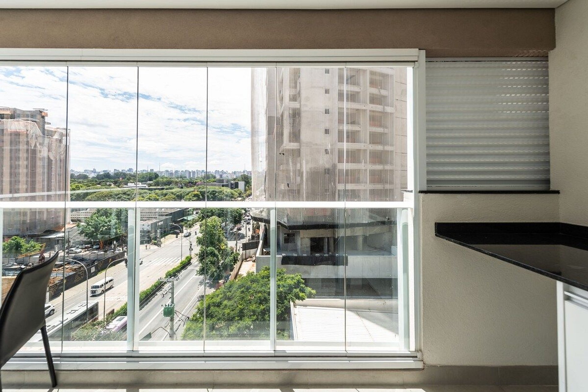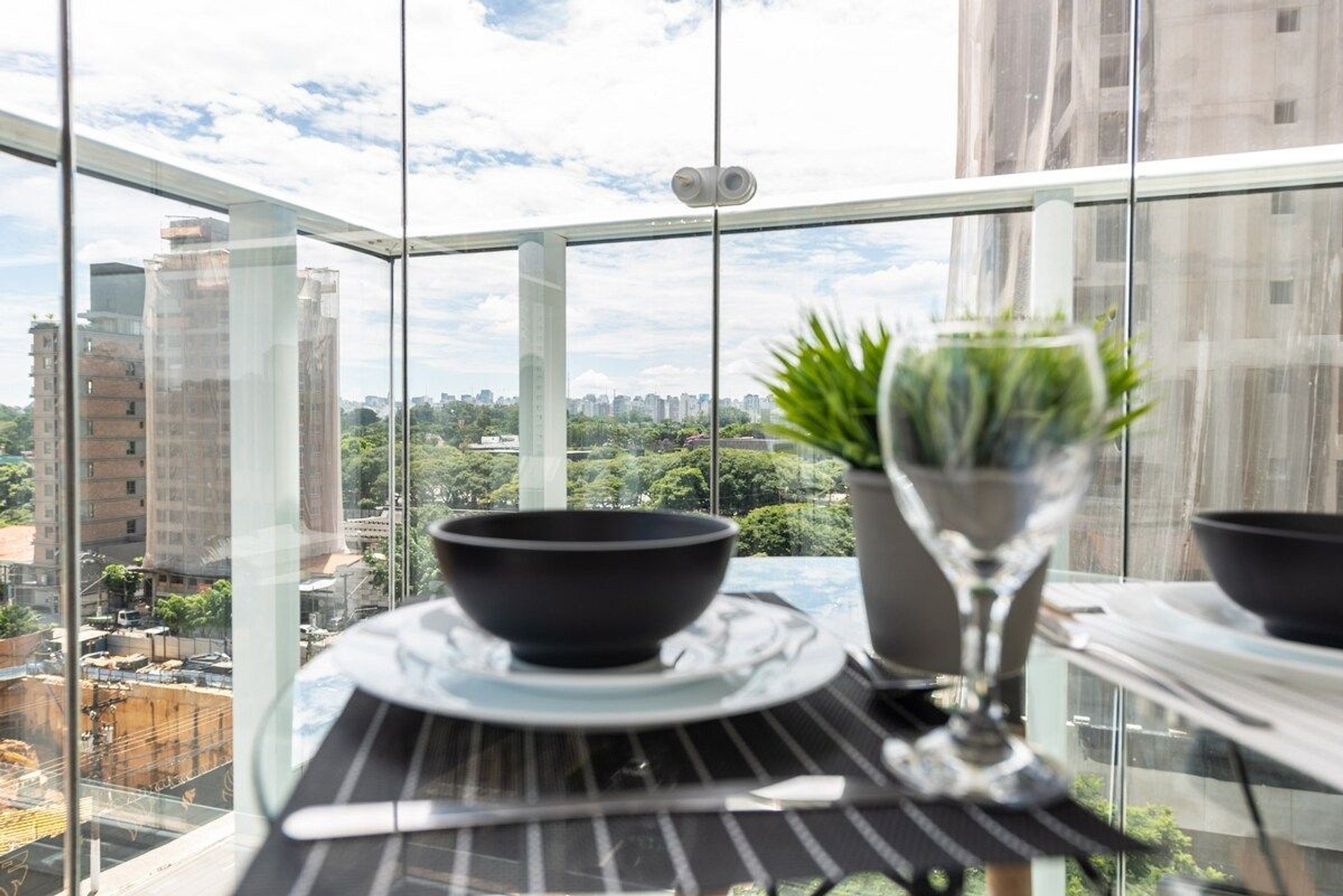 Studio moderno e completo com vista privilegiada da cidade.