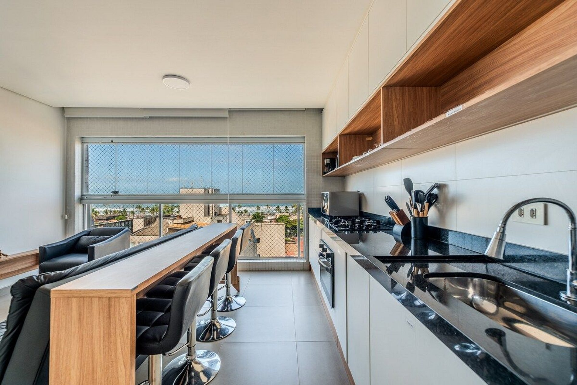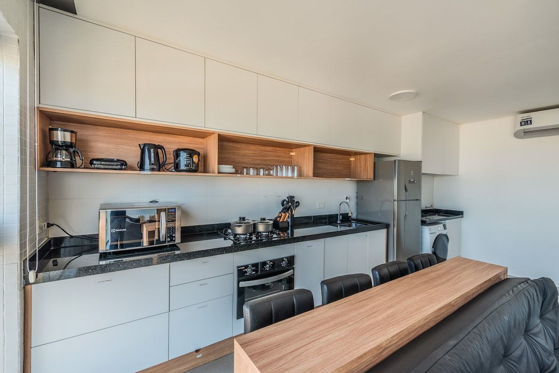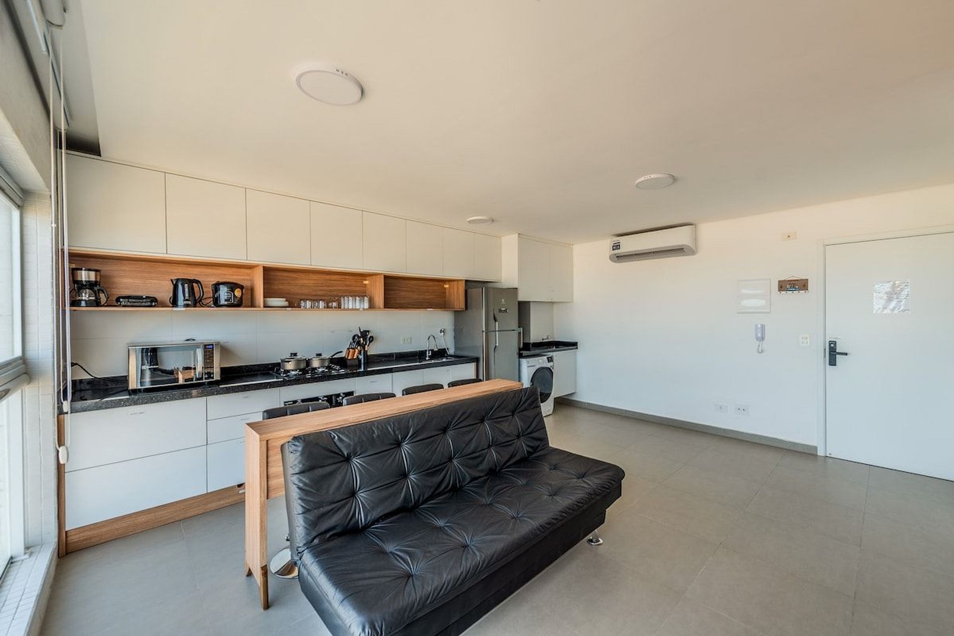 Nosso apartamento é a definição de estilo, modernidade, e conforto, perfeito para aqueles que desejam viver o melhor do Guarujá com classe e praticidade. A unidade foi cuidadosamente decorada para proporcionar um ambiente acolhedor e moderno, com todos os detalhes pensados para seu bem-estar. • Ambiente Moderno e Aconchegante, combinando design contemporâneo e conforto, criando um espaço ideal para relaxar após um dia de praia. • Janelas com persianas motorizadas, manuseio por controle remoto. • Máquina de lavar roupa e secar. • Cozinha Equipada: Com fogão, forno, geladeira, micro-ondas e todos os utensílios necessários para preparar suas refeições favoritas. • Espaço para Trabalho e Refeições Rápidas em uma bancada confortável para quem precisa trabalhar remotamente. • Banheiro moderno e espaçoso com chuveiro de alta pressão. • Check-in fácil e descomplicado, com acesso pela portaria do prédio.