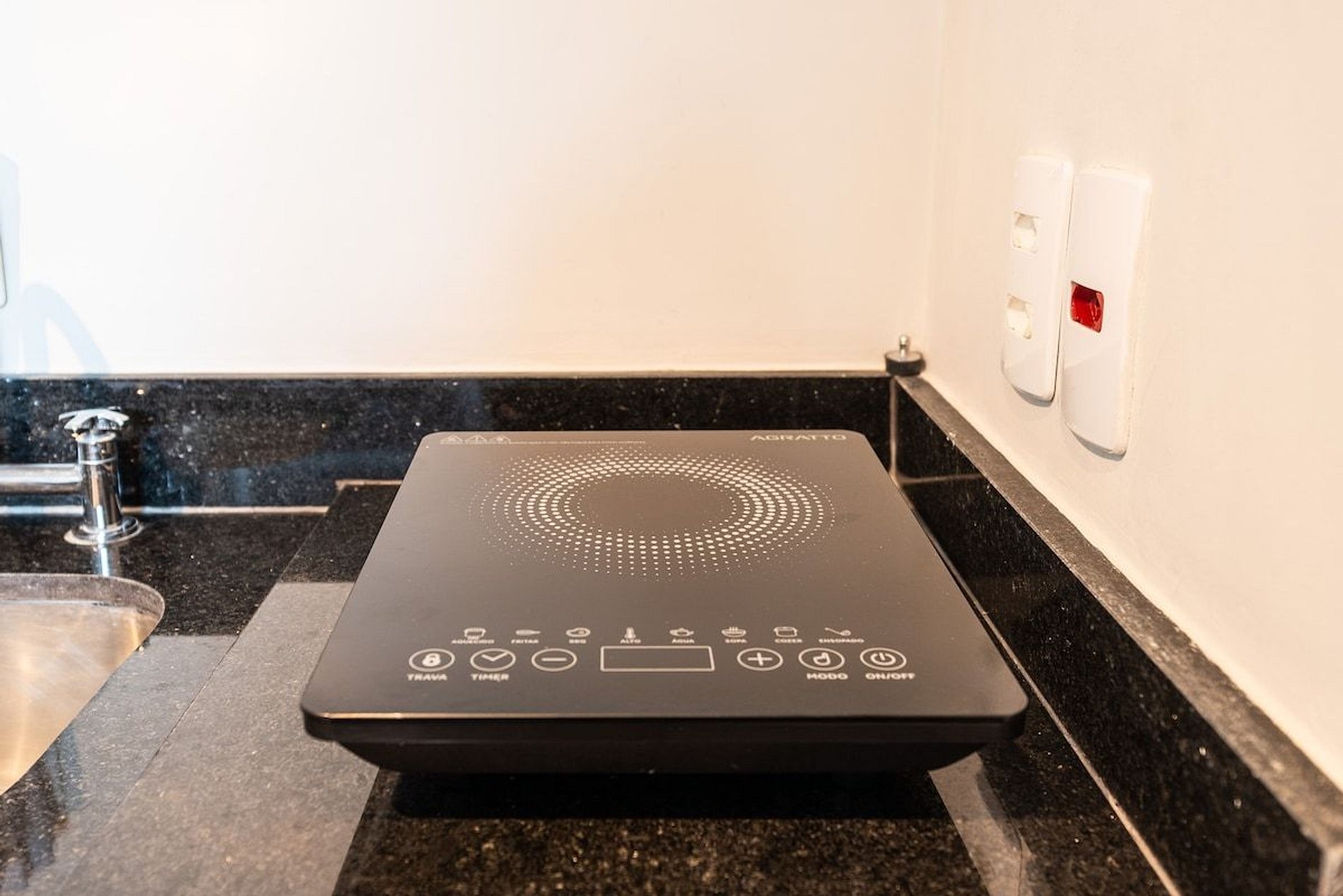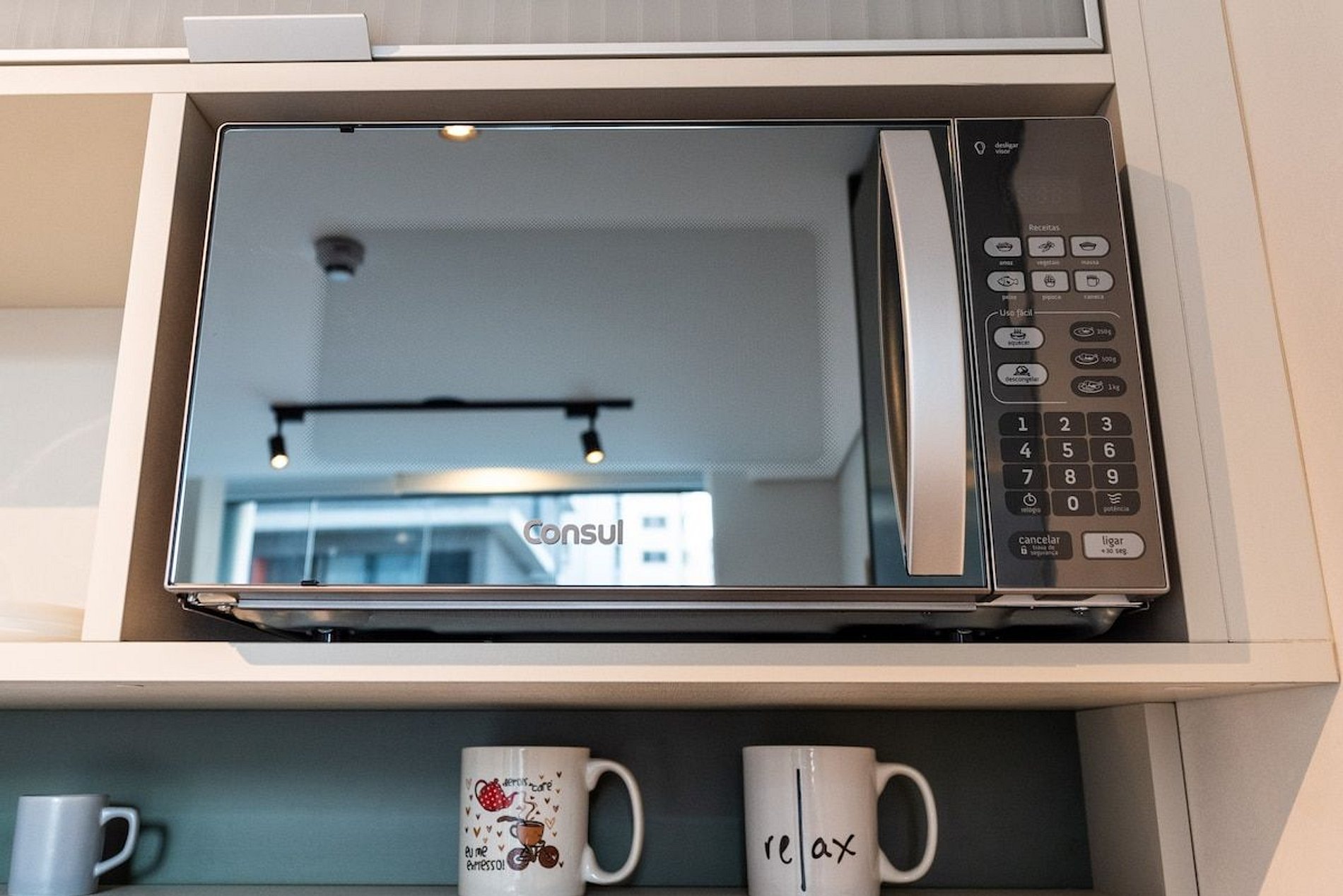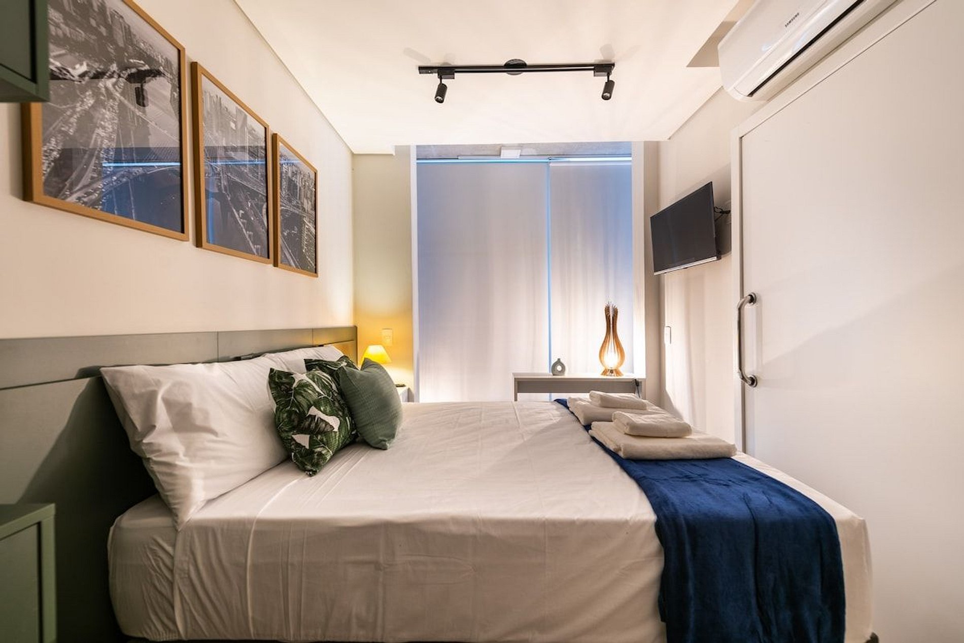 • Bancada para Jantar: Espaço perfeito para refeições ou trabalho. • Cozinha: Equipada para preparar suas refeições favoritas, com cooktop, micro-ondas, e frigobar. • Banheiro Completo: Inclui todas as amenidades essenciais. • Secador de Cabelo: Disponível para sua conveniência. • Quarto: Roupa de cama de qualidade para uma noite de sono tranquila. • Armário com Cabides: Ideal para organizar suas roupas durante a estadia.