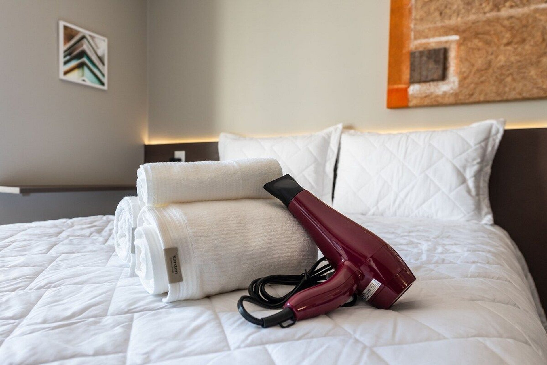 Será fornecido um jogo de enxoval (lençóis, travesseiros, fronhas e toalhas de banho e rosto) para os dois hóspedes. Não há trocas durante a permanência. Também é possível deixar um kit de enxovais extra com o pagamento de uma taxa adicional.
