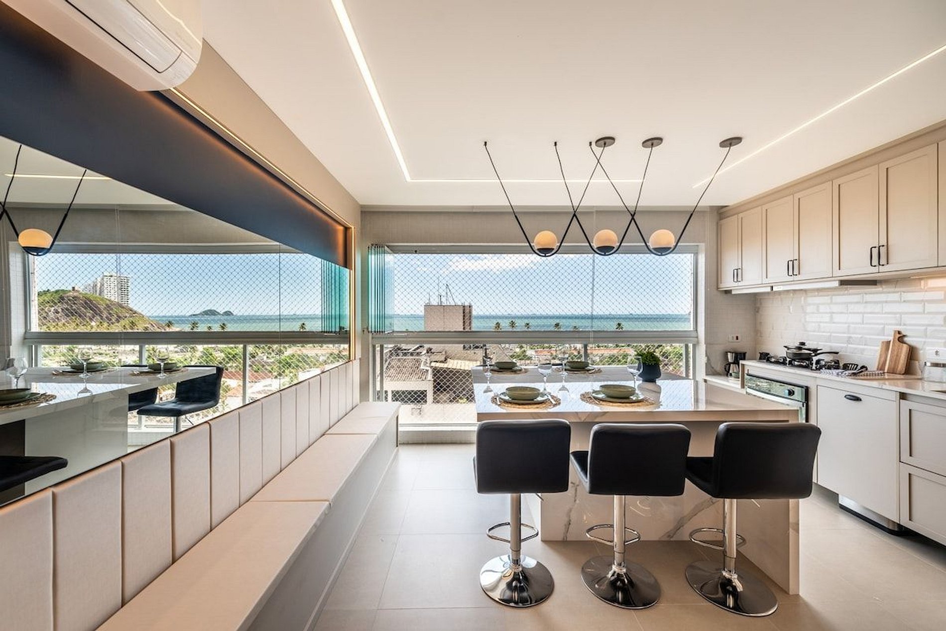Este incrível apartamento está localizado na Praia da Enseada, em Guarujá, e oferece uma vista panorâmica deslumbrante do mar, garantindo uma experiência única de relaxamento e beleza natural. O apartamento é ideal para famílias.