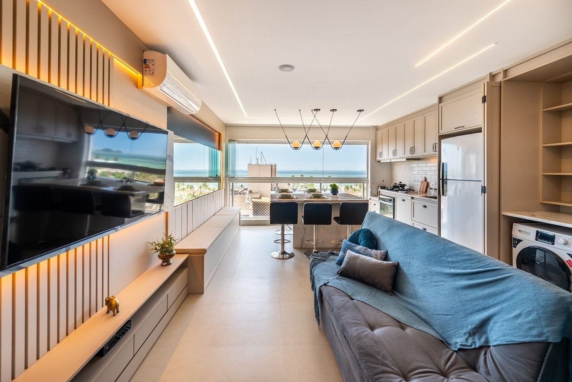 Este incrível apartamento está localizado na Praia da Enseada, em Guarujá, e oferece uma vista panorâmica deslumbrante do mar, garantindo uma experiência única de relaxamento e beleza natural. O apartamento é ideal para famílias.