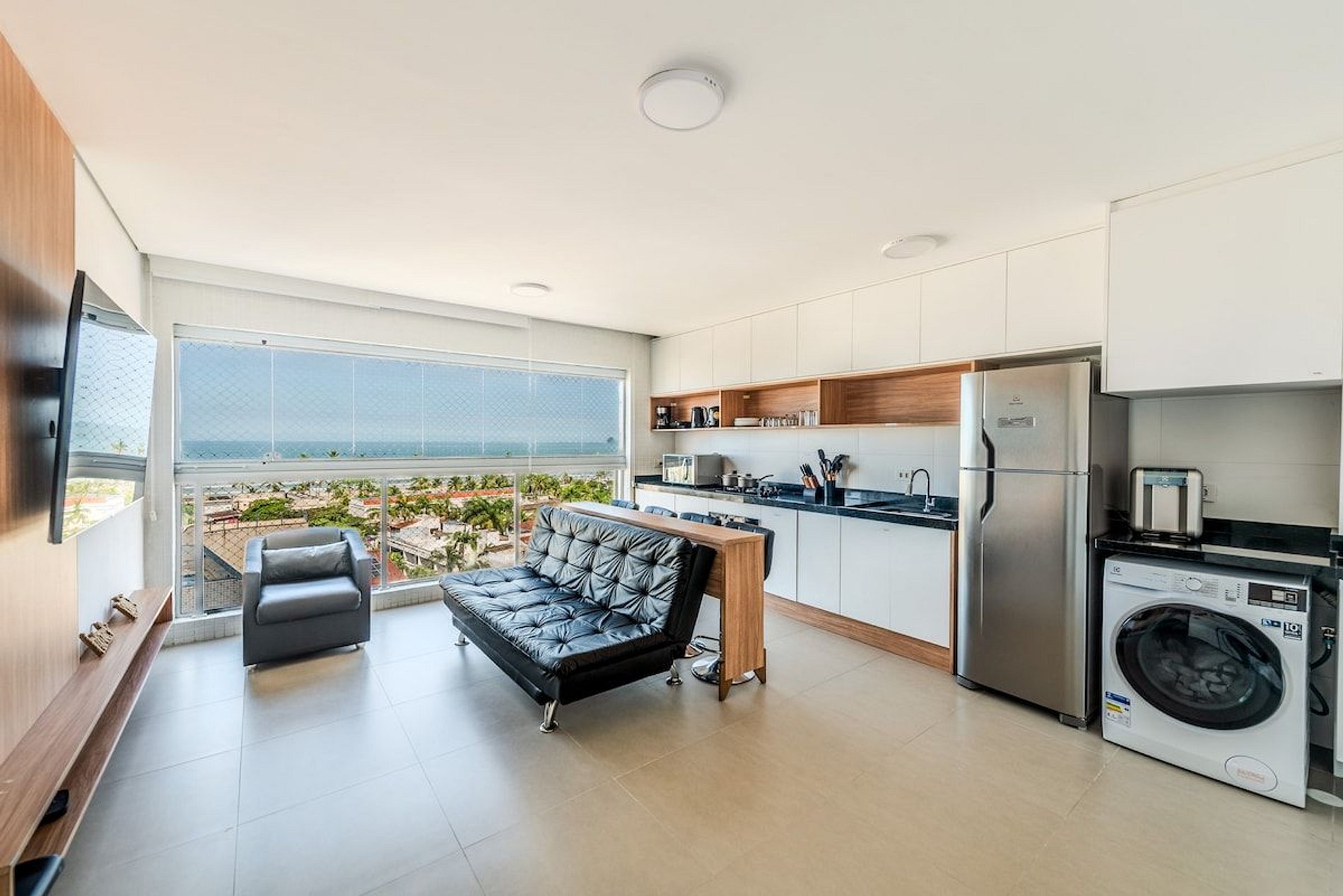 • Ambiente Moderno e Aconchegante, combinando design contemporâneo e conforto, criando um espaço ideal para relaxar após um dia de praia.