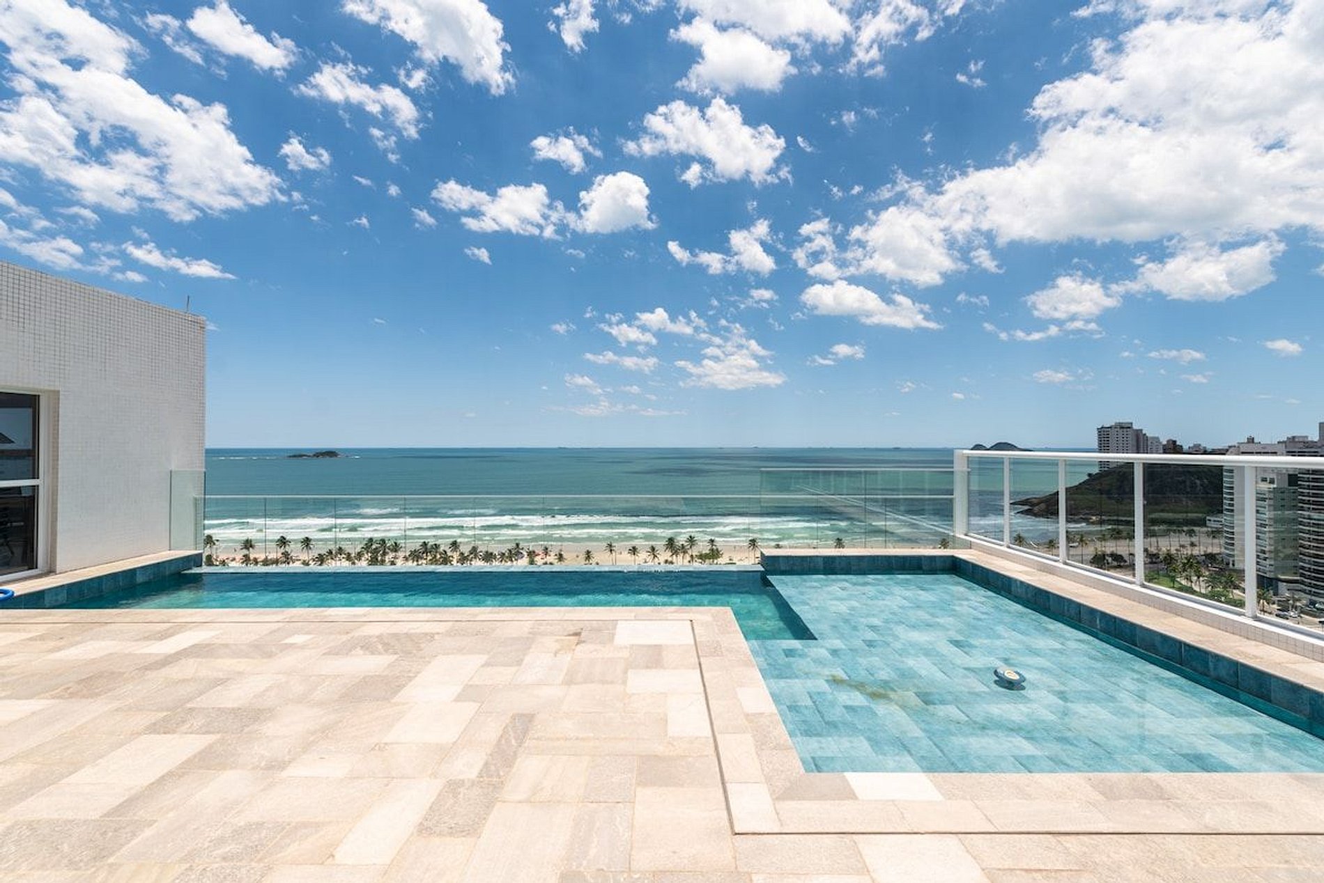 • Piscina borda infinita, com vista panorâmica para a praia.