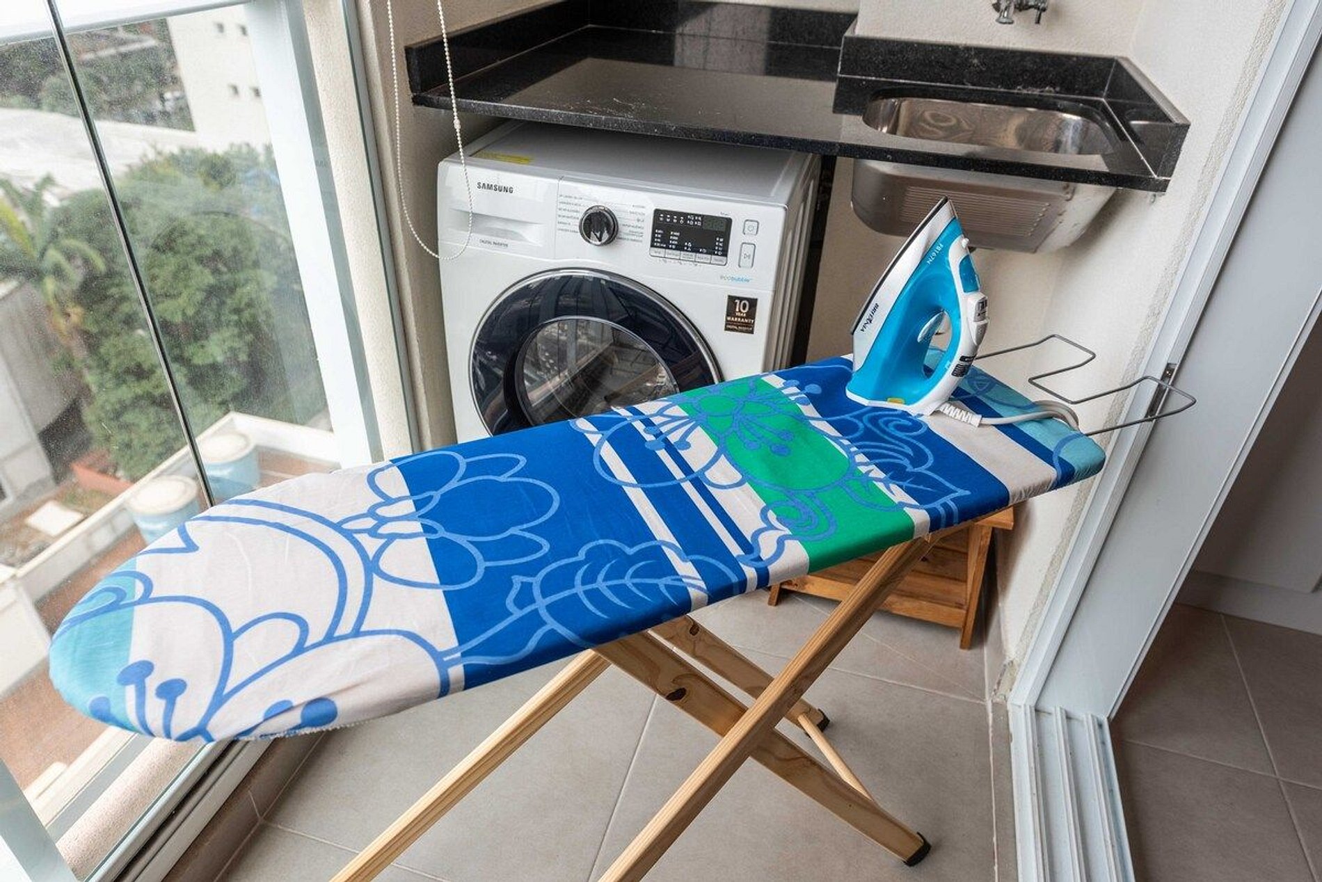 Equipado com Wi-Fi, Smart TV, fogão de indução de 1 boca, geladeira, micro-ondas, cafeteria eletrica, filtro de água, ar condicionado, secador de cabelo, ferro e tábua de passar, utensílios de cozinha, guarda-roupa com cabides, sanduicheira e blackout nas cortinas.
