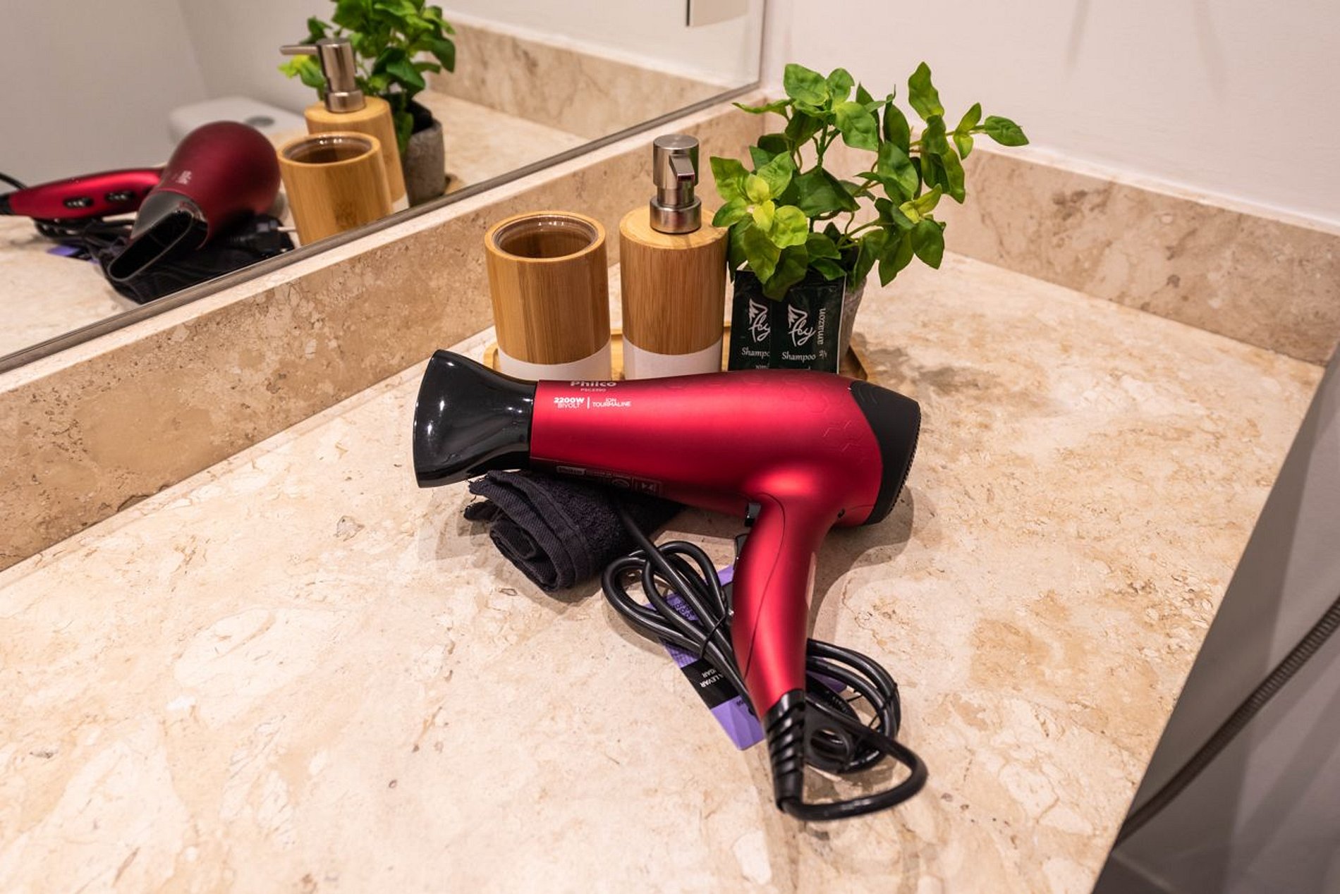 Secador de cabelo disponível.