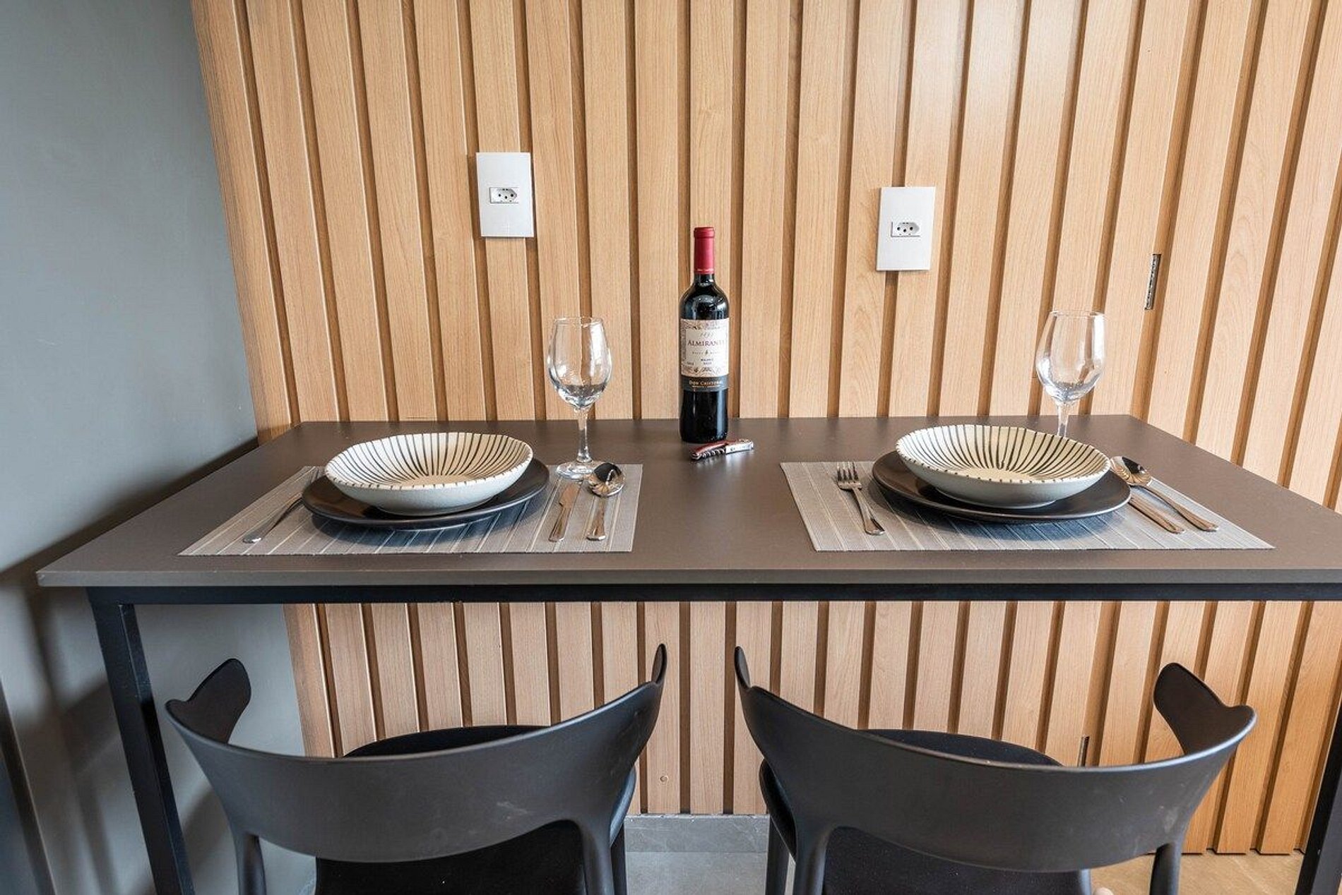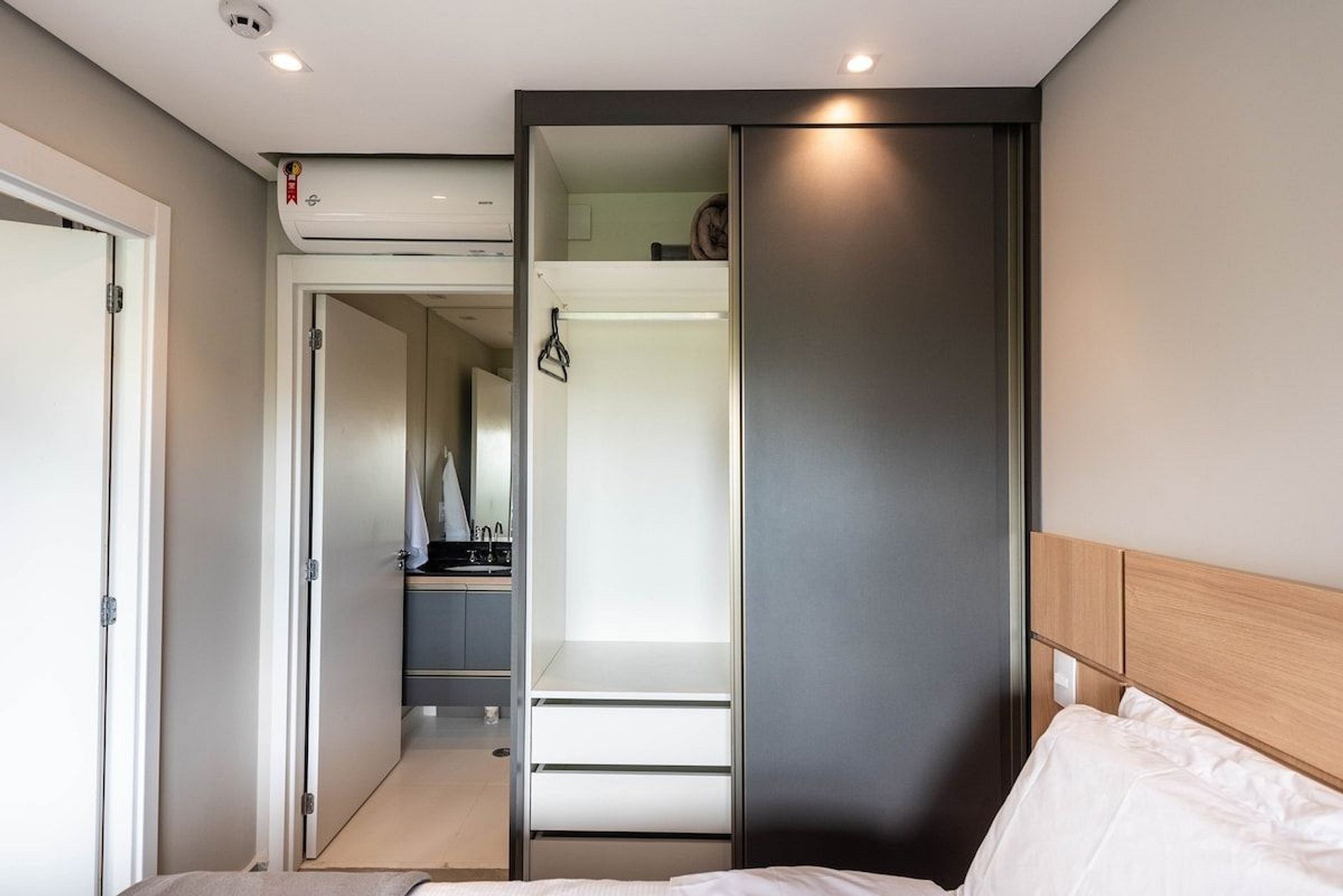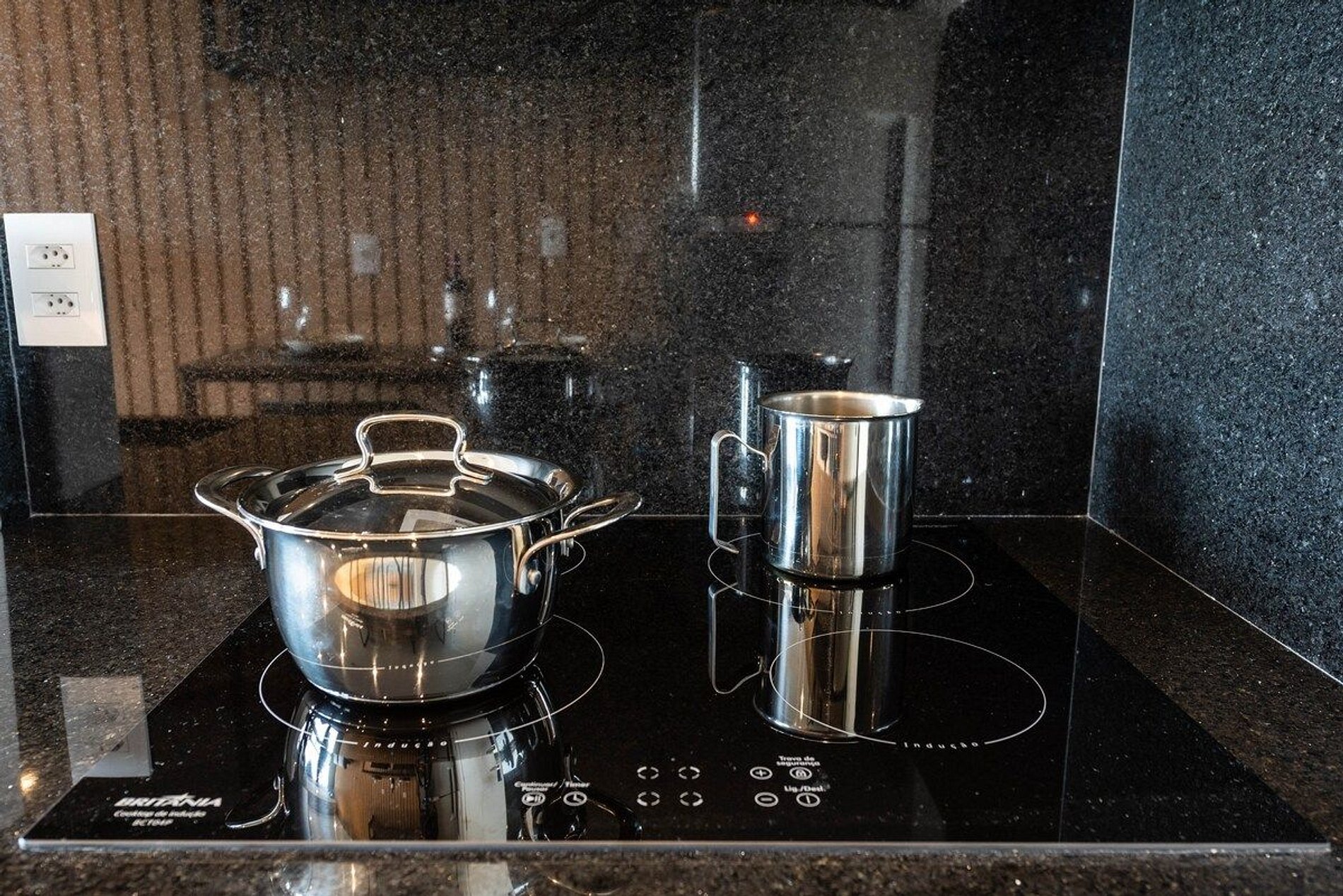O apartamento possui 1 quarto individual com 1 cama de casal padrão (1,38x1,88), uma sala confortável com 1 sofá cama de casal. Cozinha equipada com Airfryer, sanduicheira, cafeteira elétrica, fogão de indução 4 bocas, panelas e outros itens básicos.