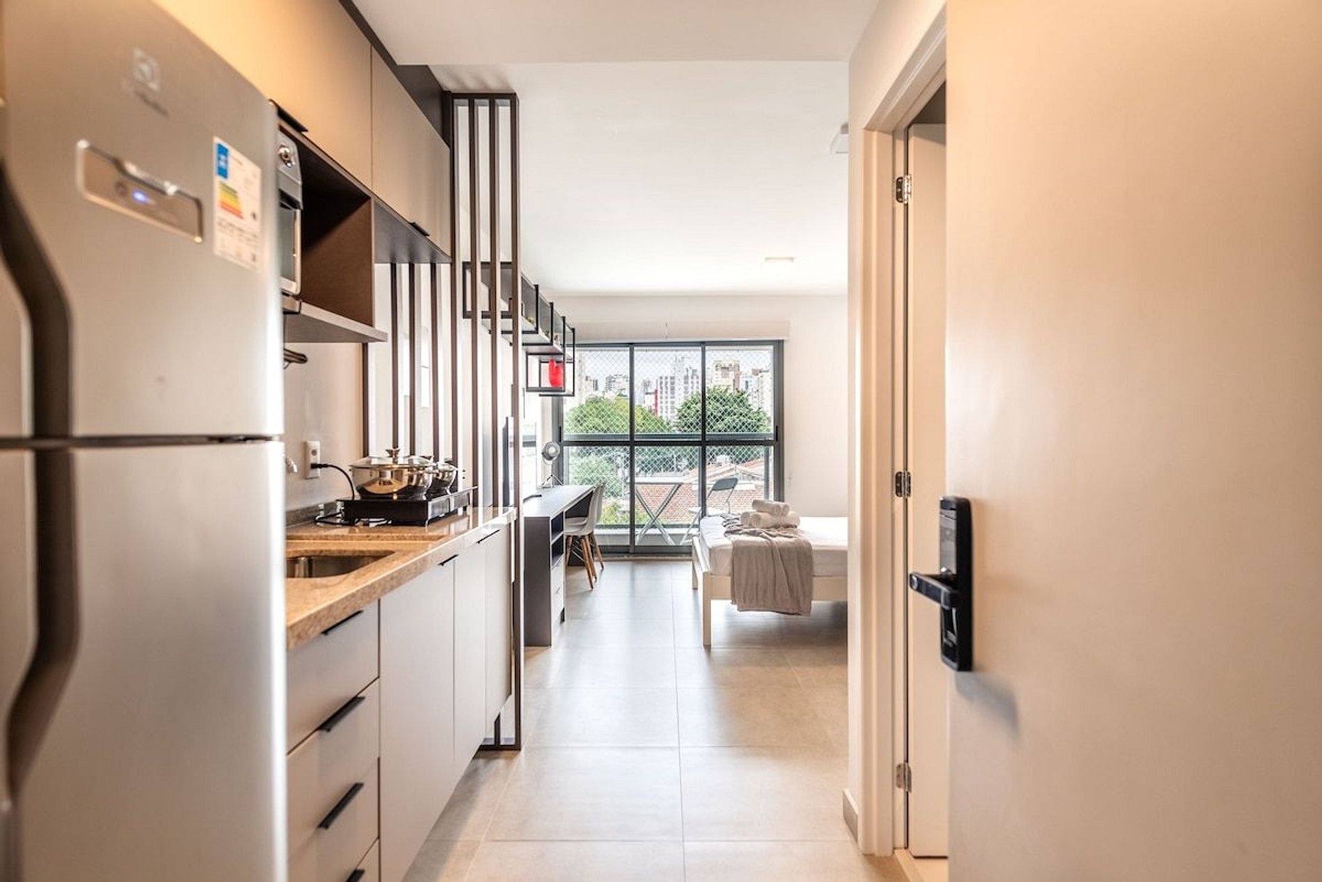 O acesso de hóspedes ocorre pela portaria principal do condomínio. Cadastro realizado por biometria. Código de acesso ao studio será enviado 1 dia antes do checkin. Acesso a todas áreas do comuns do condomínio, como: bicicletário, lavanderia coletiva, academia e piscina.