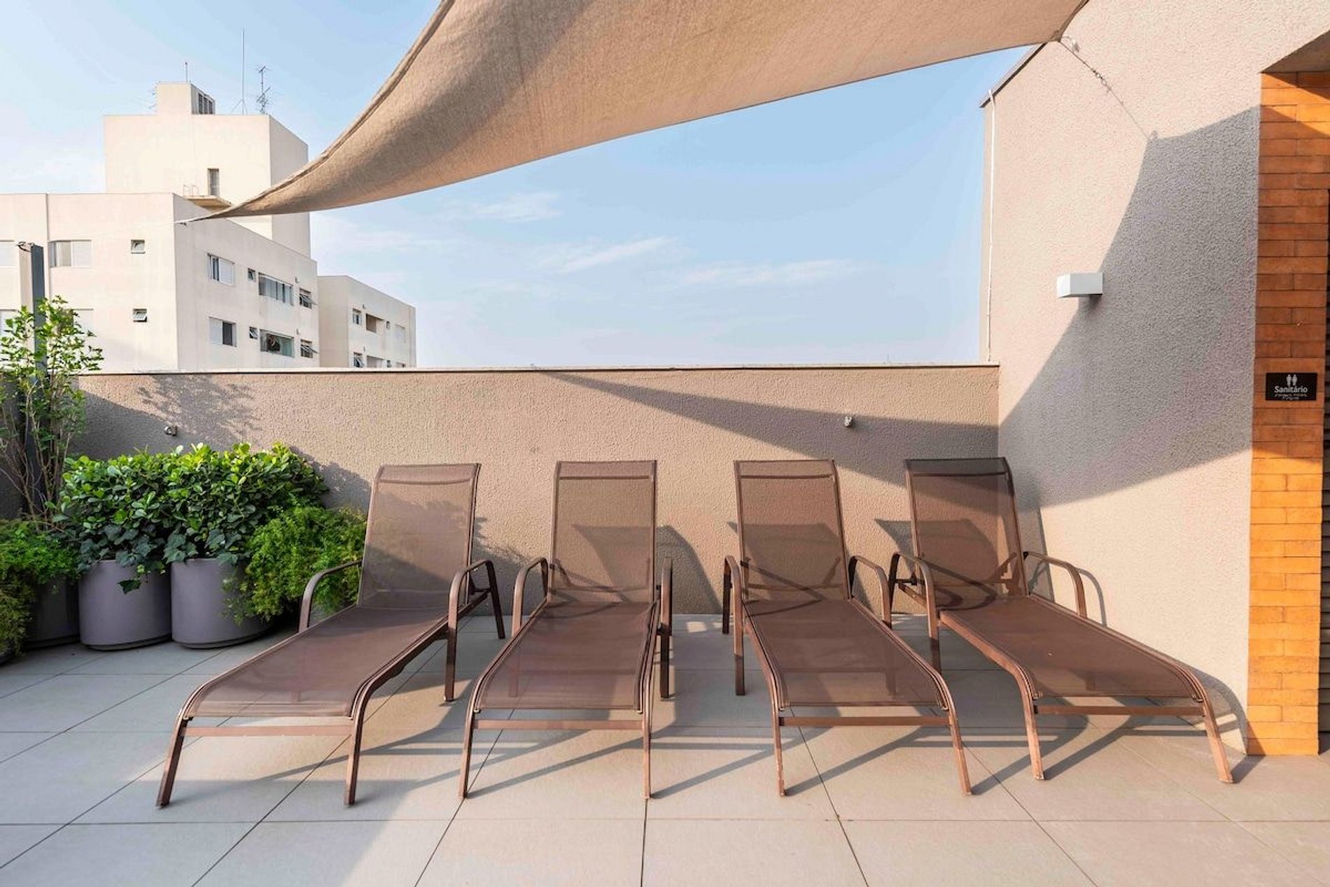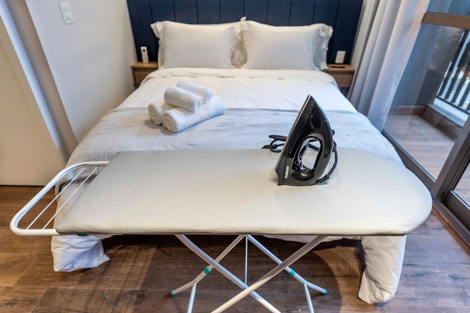 Quarto: •Moderno e recém-decorado •Cama queen confortável •Roupa de cama de alta qualidade Banheiro: •Amplo e moderno •Ótimo chuveiro •Toalhas macias e confortáveis •Secador de cabelo Cozinha: •Completa e funcional •Utensílios necessários para preparar refeições Área de Lazer: •TV disponível •Internet de alta velocidade para relaxamento e entretenimento Ambiente Geral: •Aconchegante e cuidadosamente planejado •Oferece equilíbrio entre conforto e conveniência •Ferro de passar e tábua incluídos