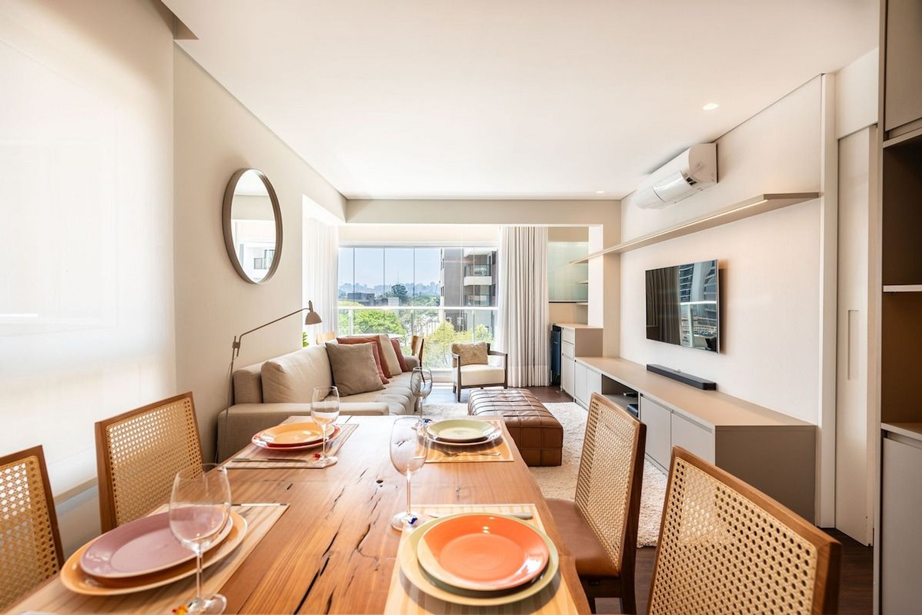 Seja bem-vindo ao Sintese SP! Apartamento moderno e completo com vista privilegiada da cidade. Estará muito bem localizado na Avenida Ibirapuera, 1891 em Moema, uma das melhores opções, em um dos bairros mais nobres e completos de São Paulo. Metro, faculdades, escolas, hospitais, farmácias, supermercados, restaurantes, bares, Aeroporto de Congonhas e muito mais, tudo bem próximo de você. Fácil de chegar e se movimentar pela cidade, aproveite nossa estadia e todas facilidades ao seu redor.