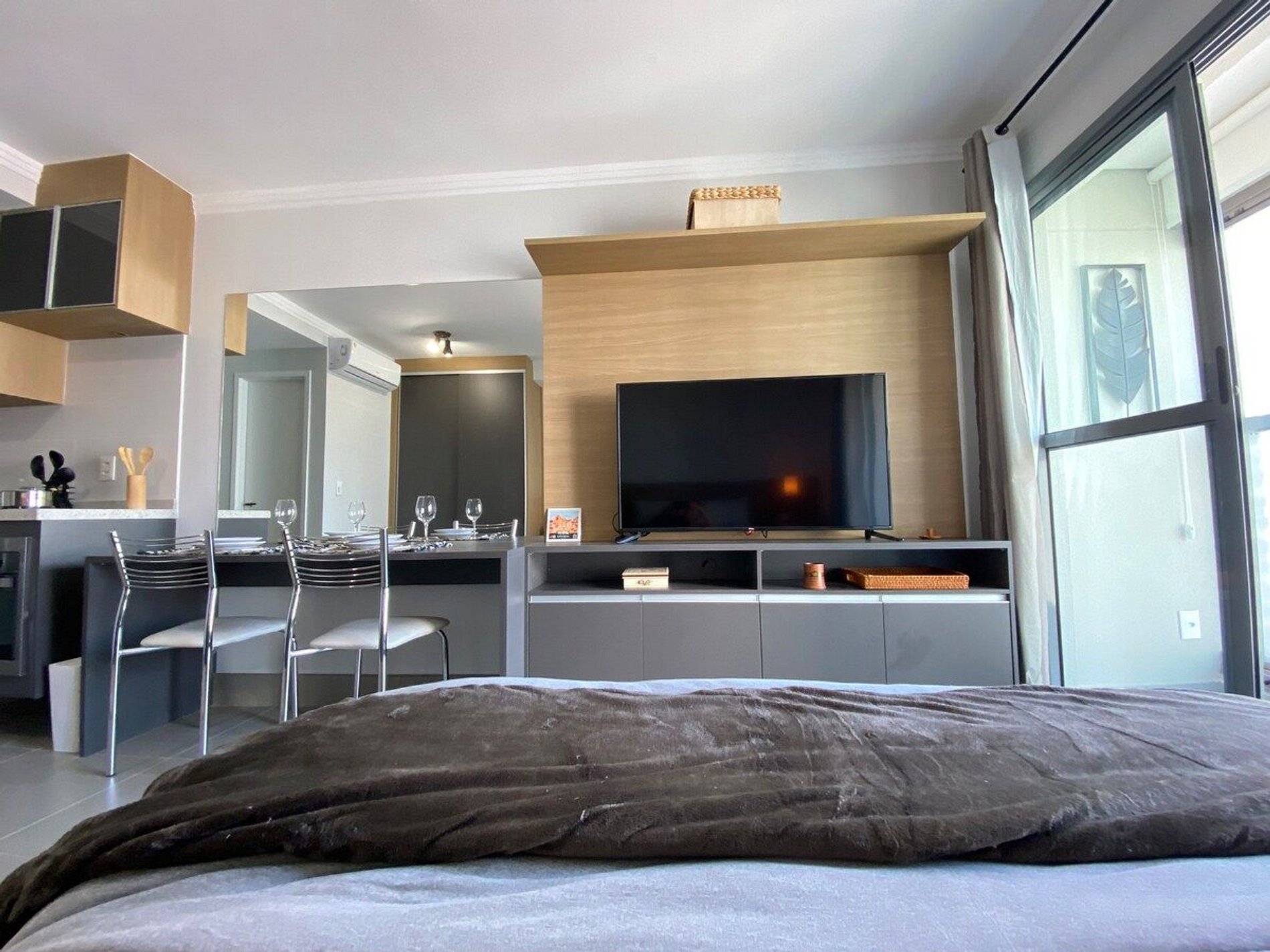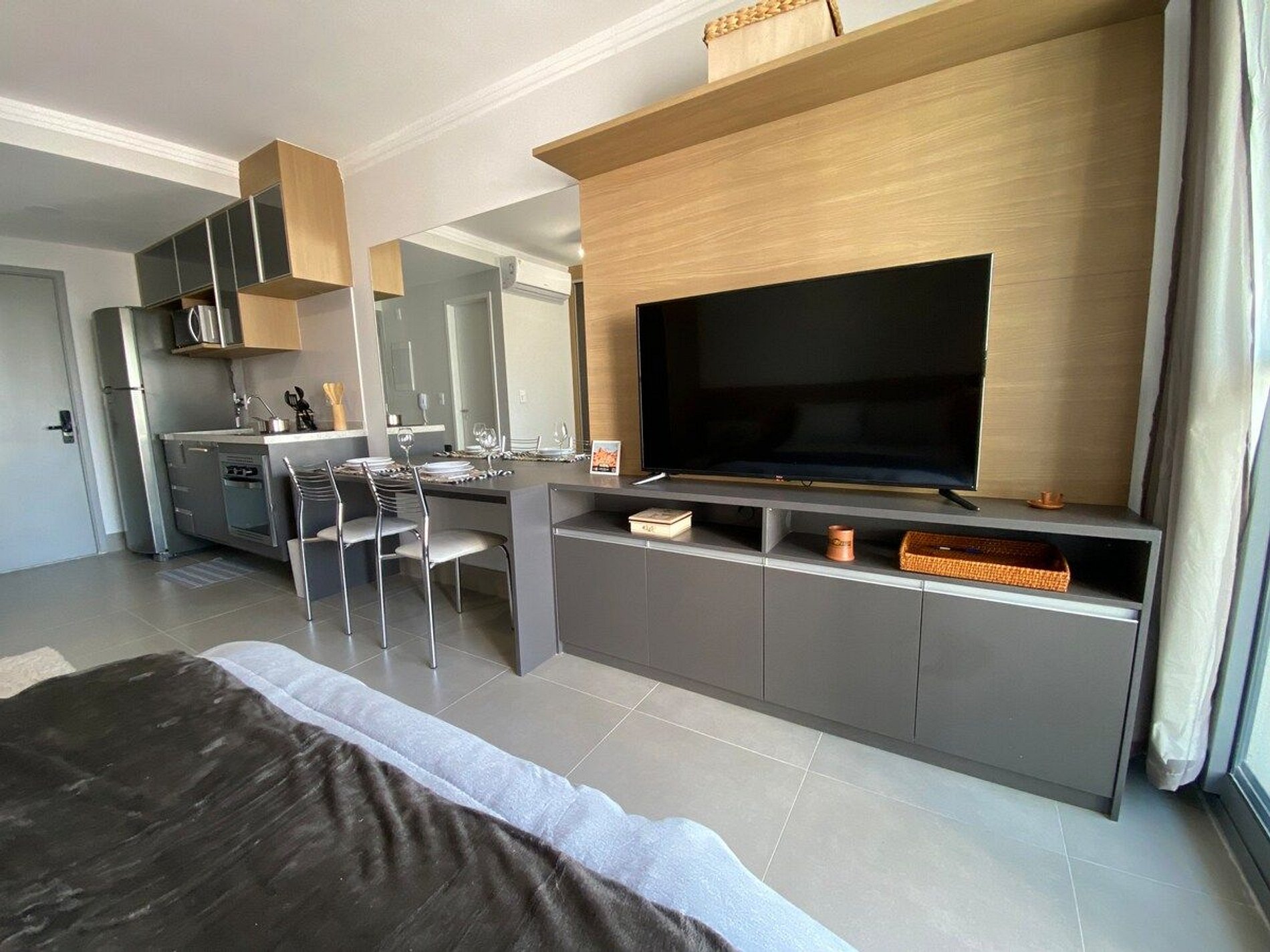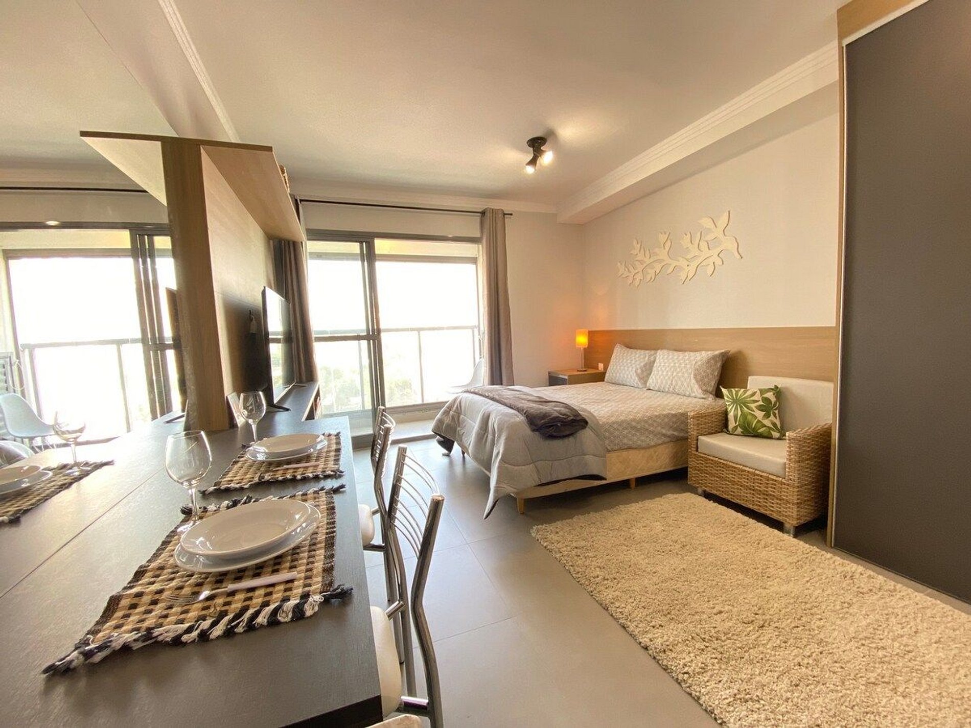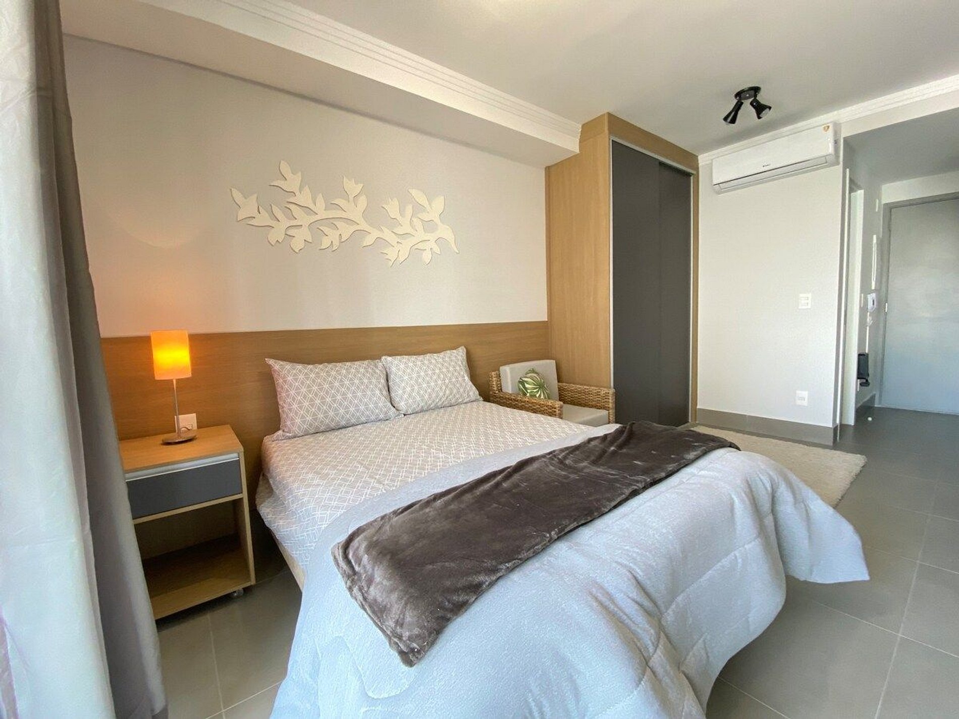 O Estúdio Cab está todo equipado, com uma cama confortável de casal, Smart TV, Wi-Fi de 250MB, Ar condicionado split, fogão cooktop de indução, forno elétrico, geladeira com freezer, micro-ondas, cafeteria elétrica, chaleira elétrica, sanduicheira, utensílios de cozinha com panela e ferro de passar roupa.