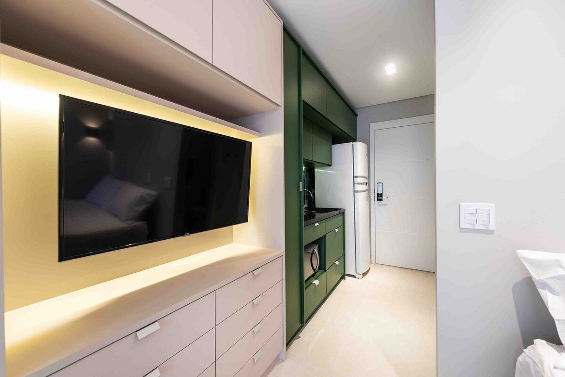 Acesso descomplicado através de check-in pela portaria e fechadura eletrônica com senha para unidade. Disponível para longas e curtas estadias.