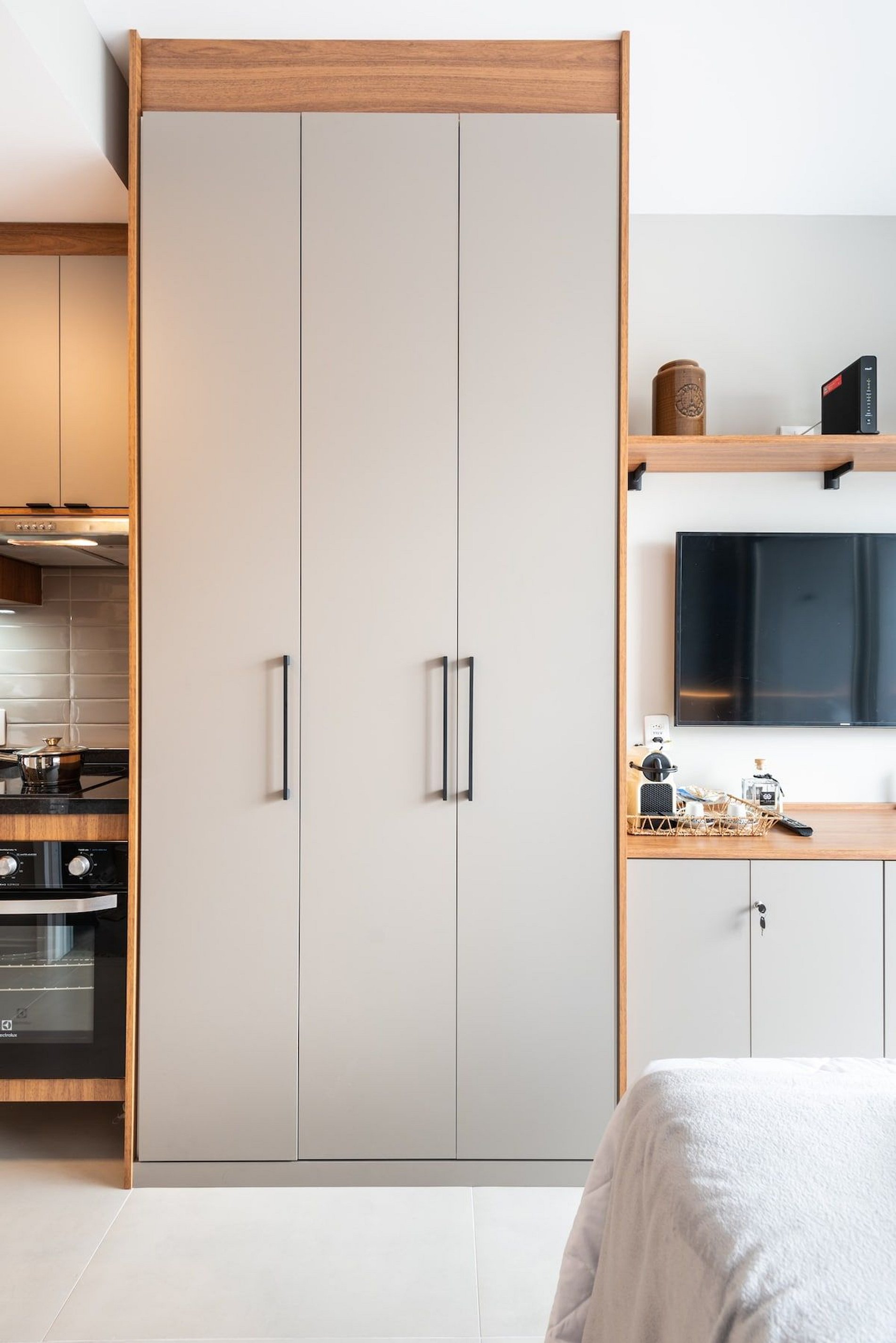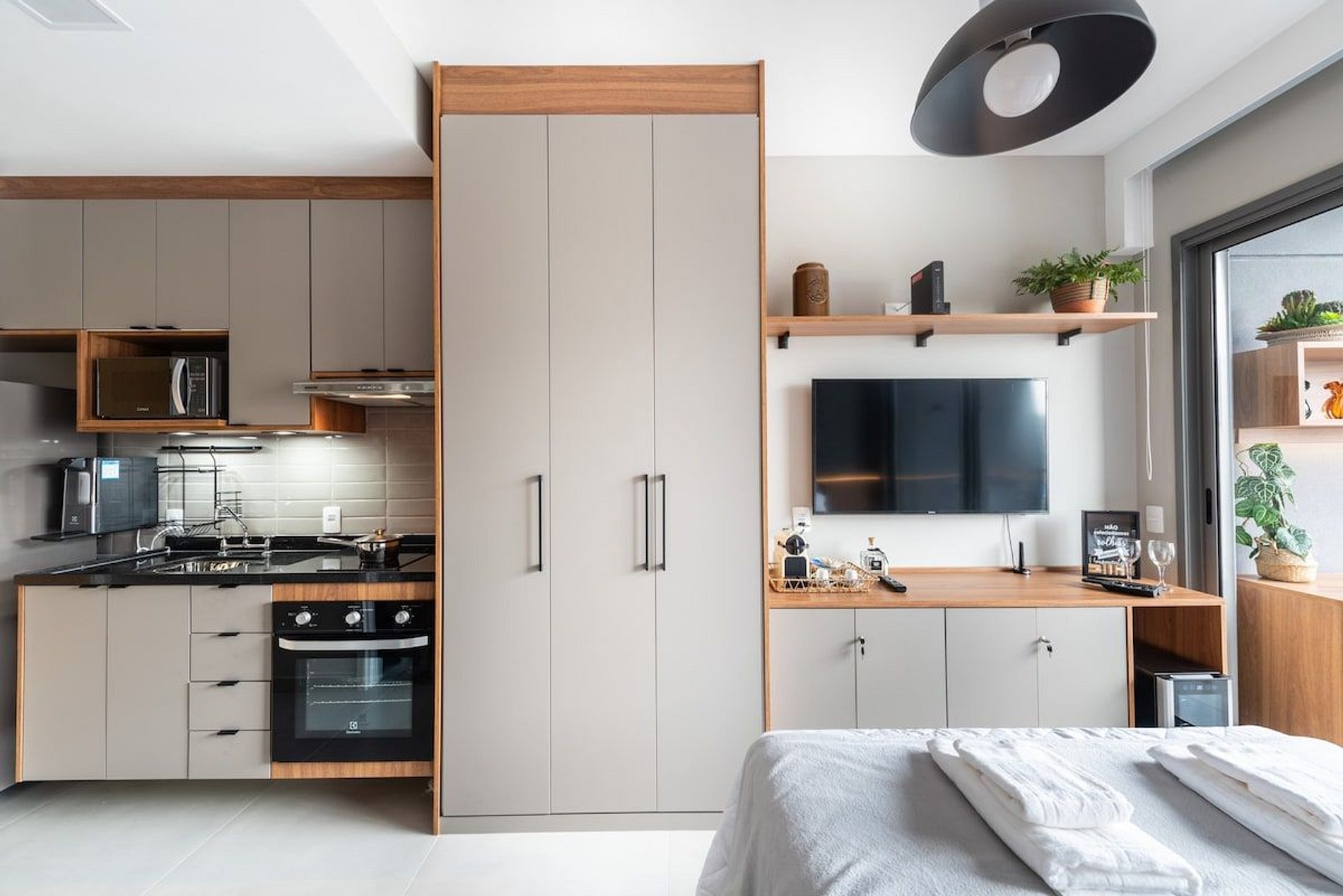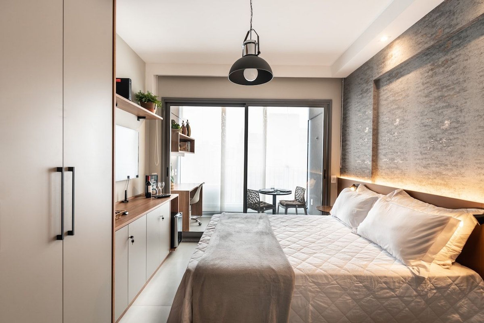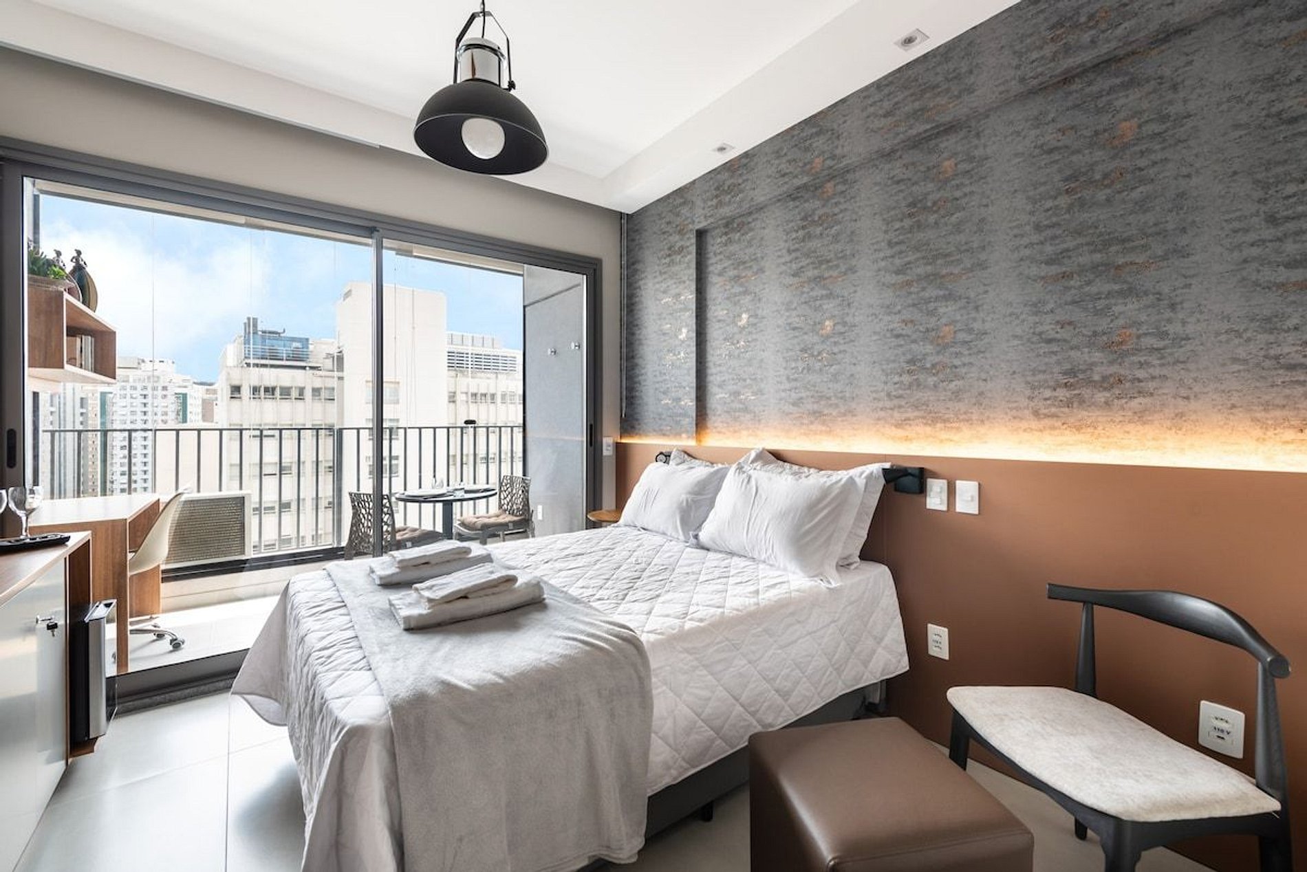 O nosso espaço é completo, você terá a sua disposição uma cama de casal padrão com uma bicama auxiliar saindo do box de casal. O studio possui wifi, TV smart, cafeteira elétrica em pó, cafeteira nespresso, liquidificador, sanduicheira, chaleira elétrica, secador de cabelo, chapinha, mesa de trabalho, adega, taças de vinho, abridor, talheres, pratos e utensílios de cozinha completo. Será fornecido um jogo de enxoval (lençóis, travesseiros, fronhas e toalhas de banho e rosto) para os dois hóspedes. Não há trocas durante a permanência. Também é possível deixar um kit de enxovais extra com o pagamento de uma taxa adicional. Você consegue encontrar tudo que precisa com facilidade indo a pé.
