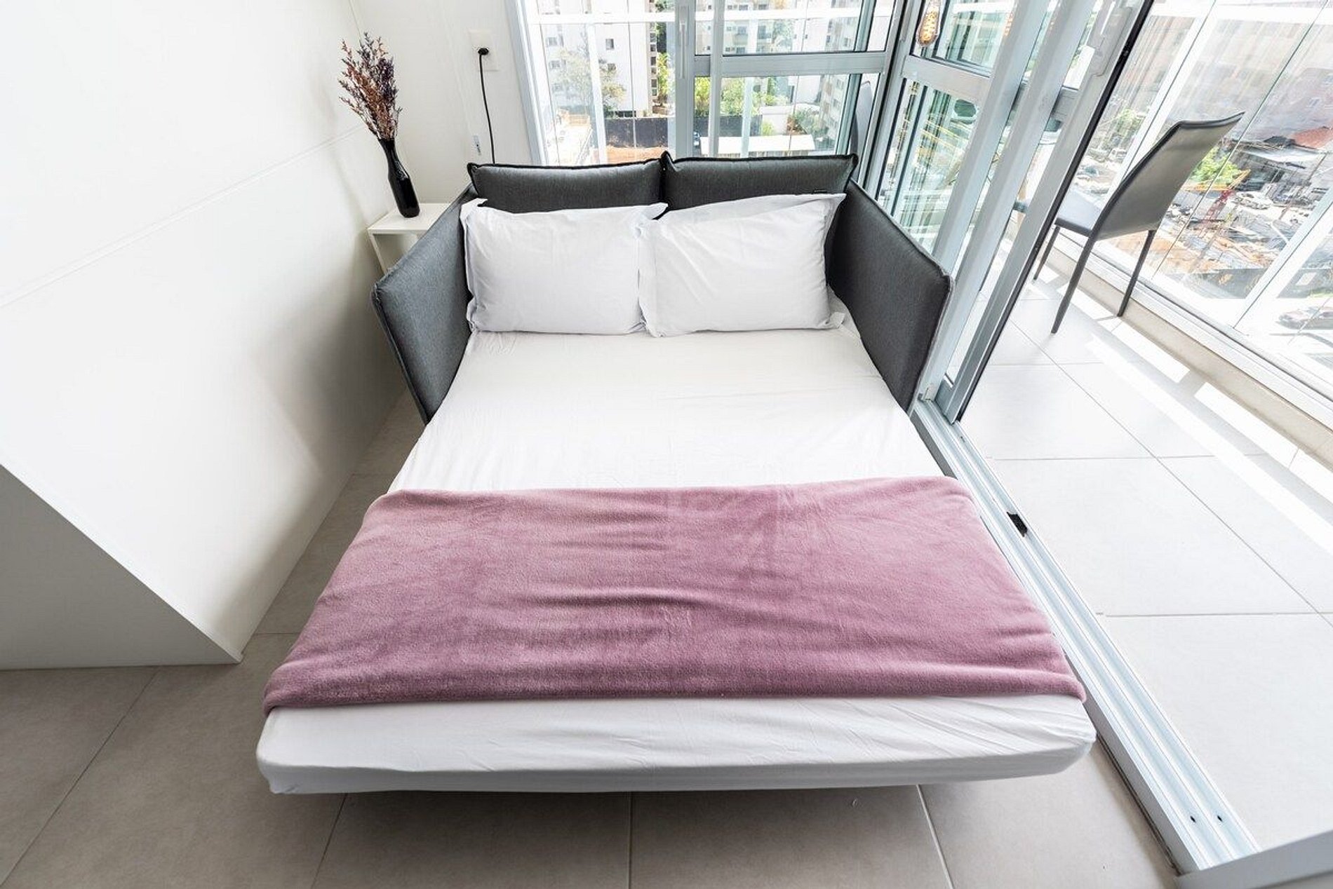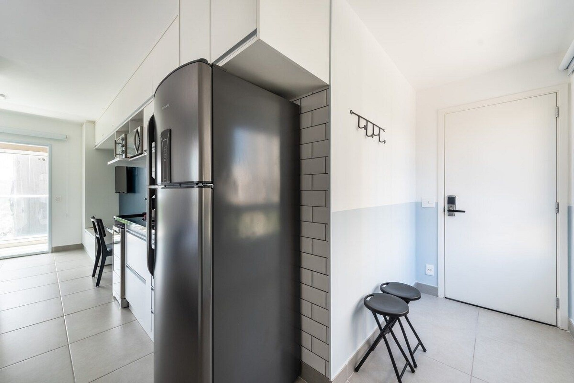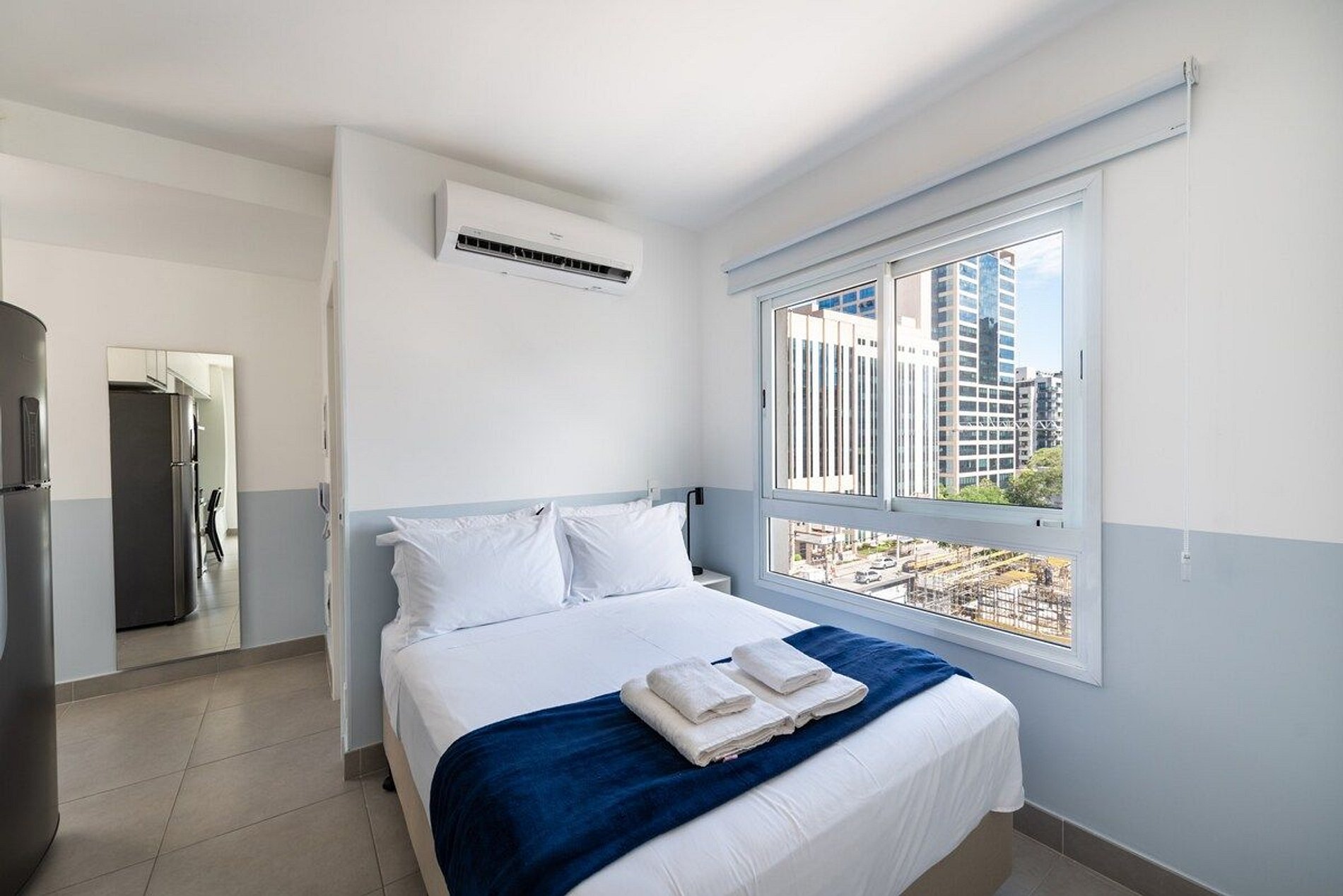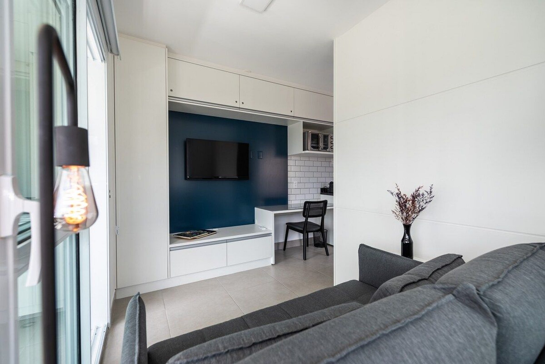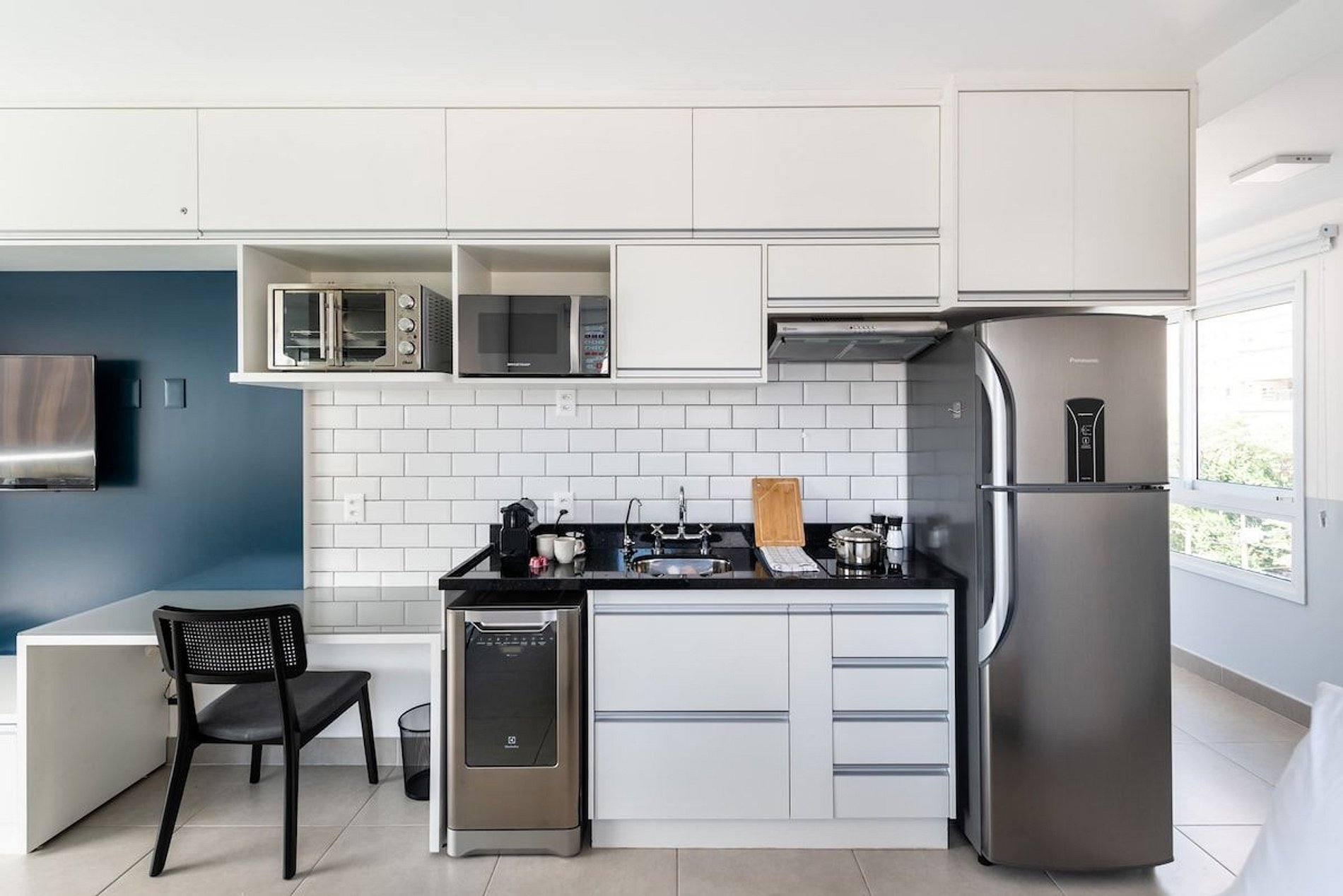 O nosso studio é completo para receber você em uma estadia de curta e longa duração. O apto possui cama de casal padrão, sofá cama de casal, cozinha completa com utensilio como airfryer, forno, fogão, lava louças, filtro de água, geladeira com freezer, microondas, cafeteira Nespresso, secador de cabelo, ferro de passar roupa, guarda roupa com cabides, entre outras comodidades que vão melhorar sua experiência.