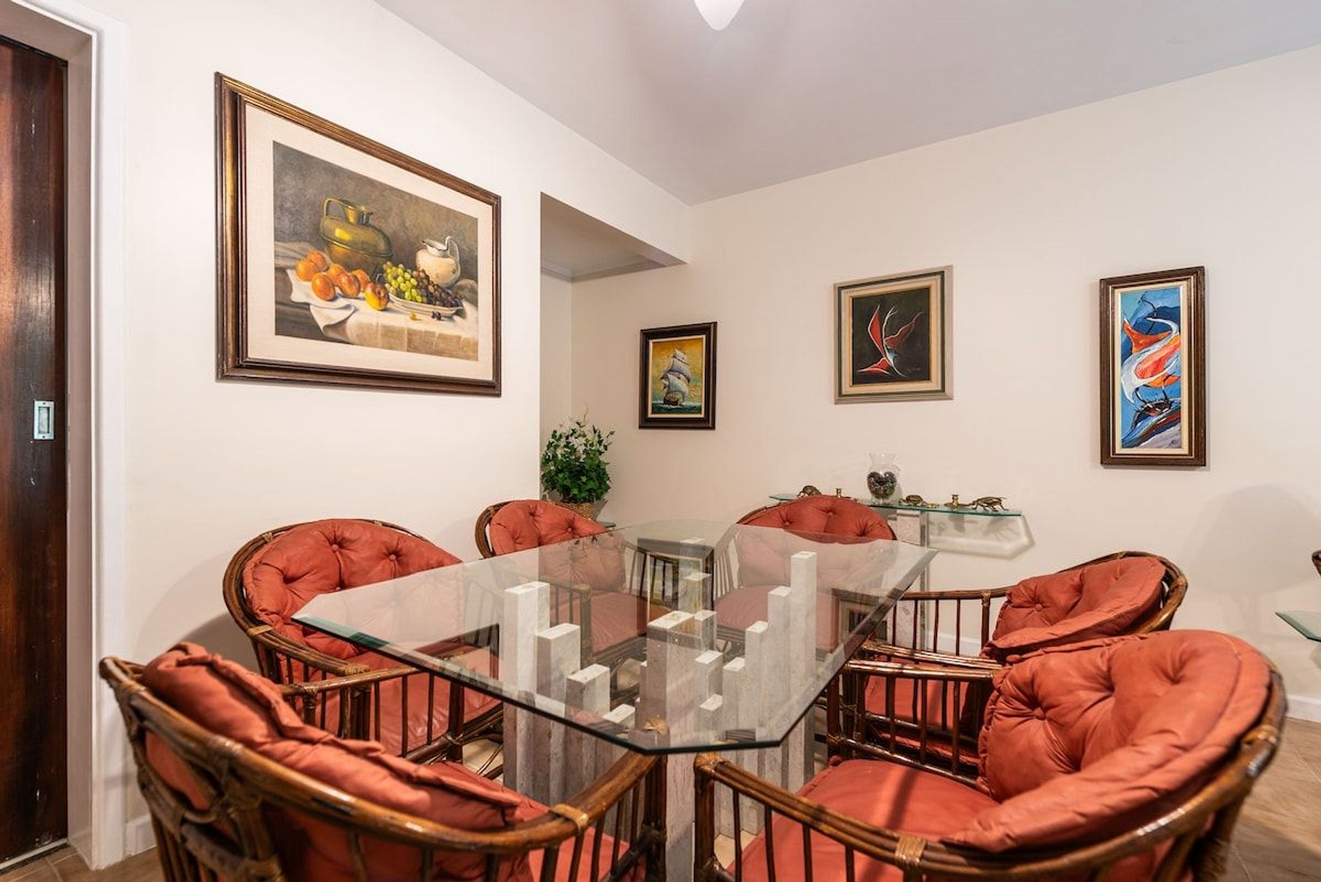 Apartamento localizado na praia central da cidade do Guaruja, praia das Pitangeurias, próximo a padaria Rei do trigo, shopping La Plage, e duas quadras da praia. Apartamento Duplex com: - churrasqueira privativa - espreguiçadeiras - salão de festas privativo - 3 quartos, sendo 2 com ar condicionado e cama de casal.