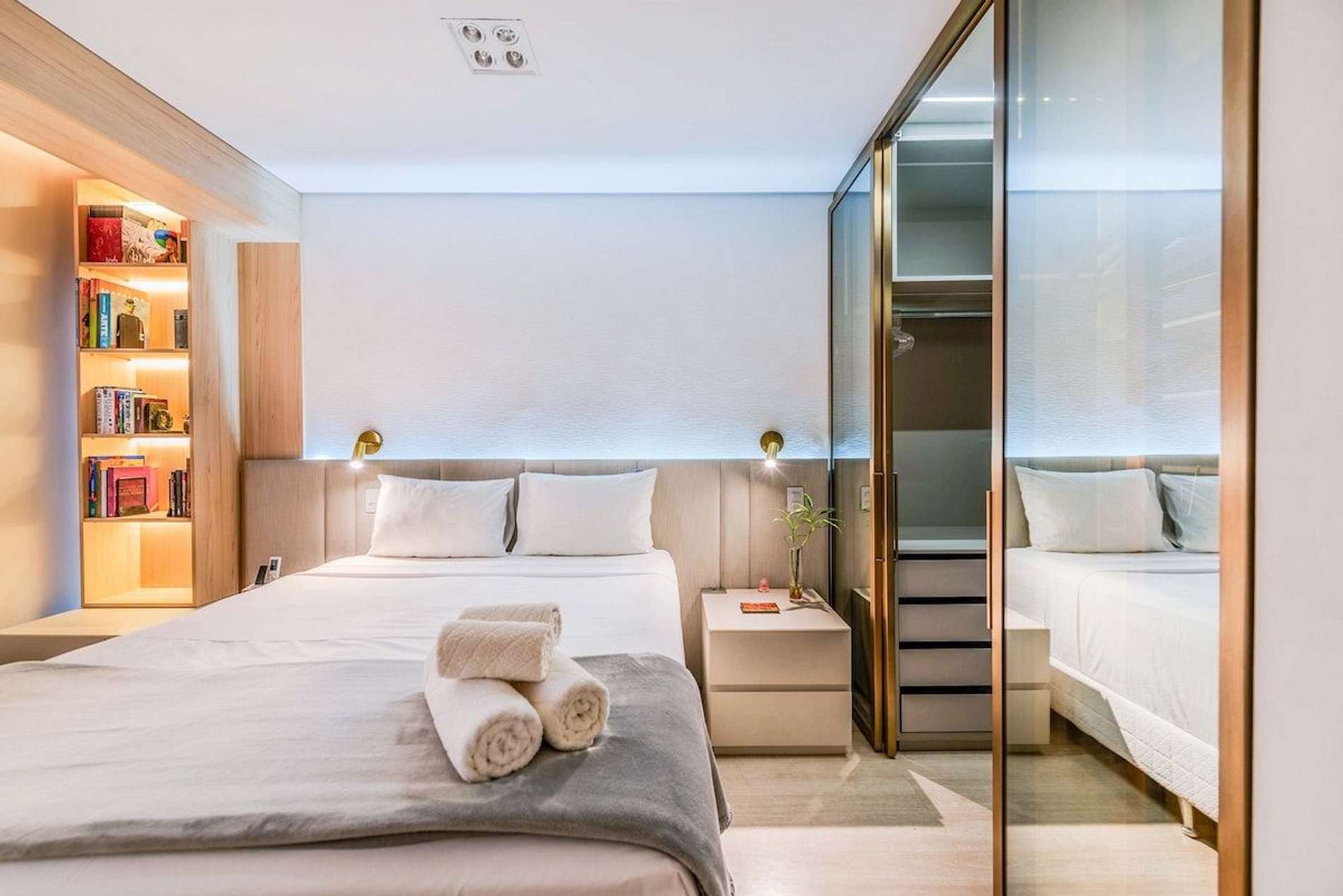 Acesso descomplicado através de check-in pela portaria e fechadura eletrônica com senha para unidade. Disponível para longas e curtas estadias.