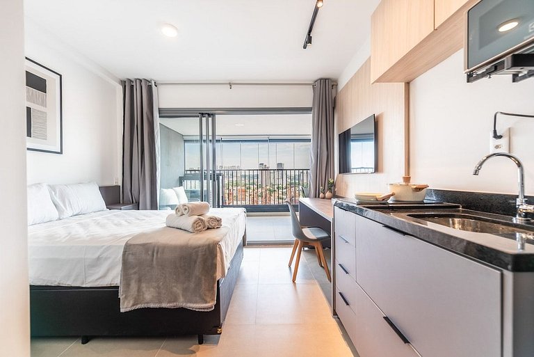 Studio na Rua Cabo Verde, 350, equipado com ótimo espaço. Ideal para até 2 pessoas.