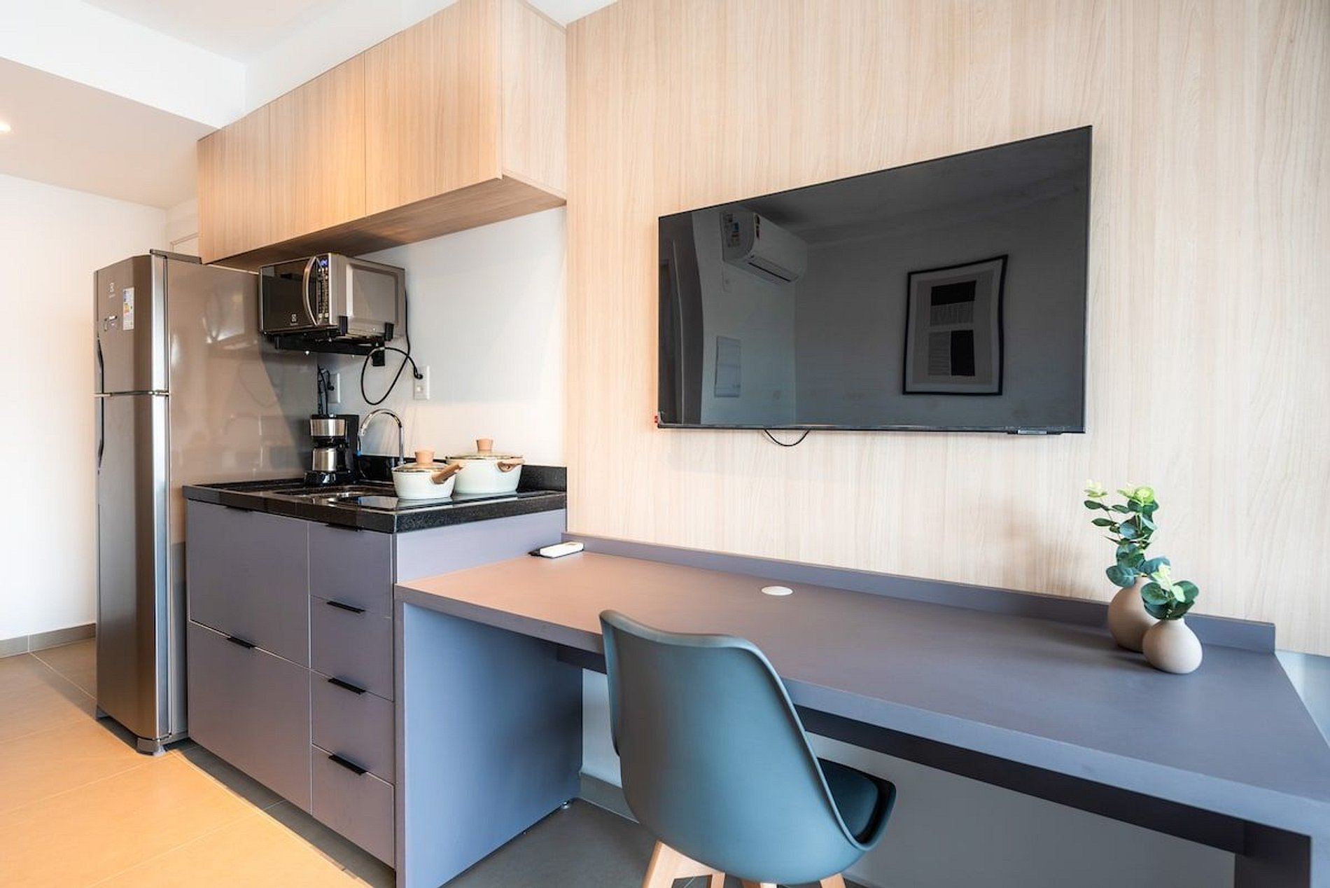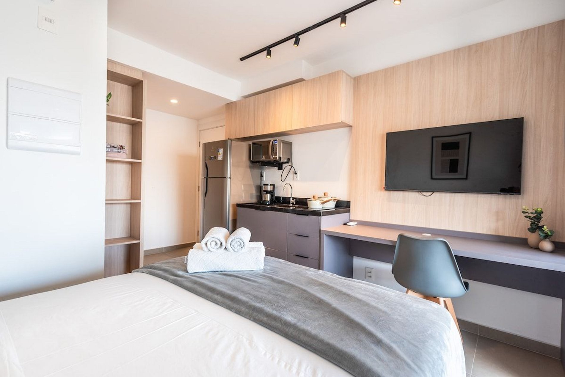 Studio na Rua Cabo Verde, 350, equipado com ótimo espaço. Ideal para até 2 pessoas.