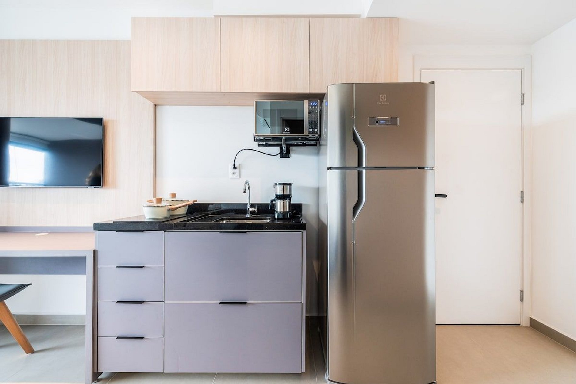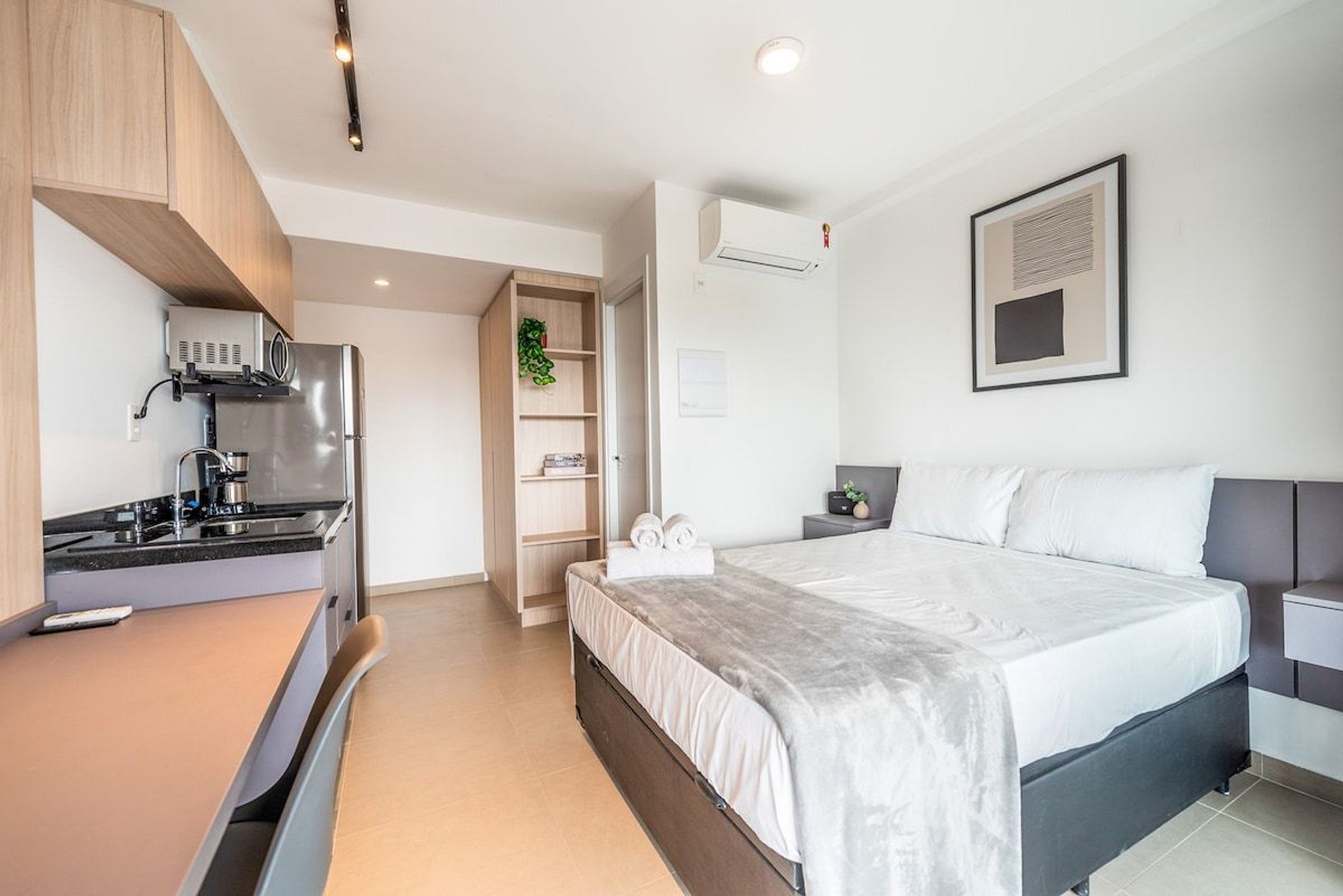 Studio na Rua Cabo Verde, 350, equipado com ótimo espaço. Ideal para até 2 pessoas.