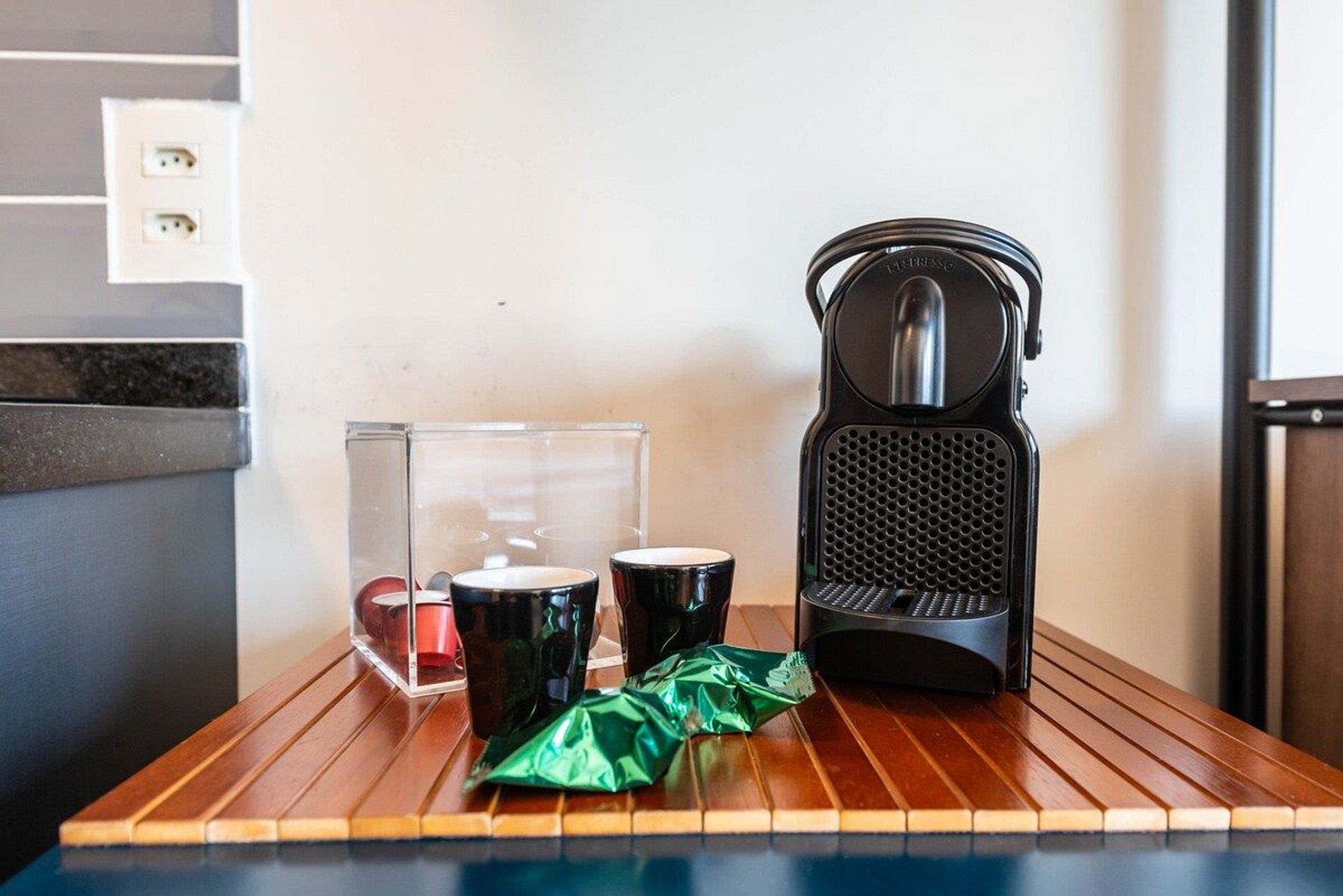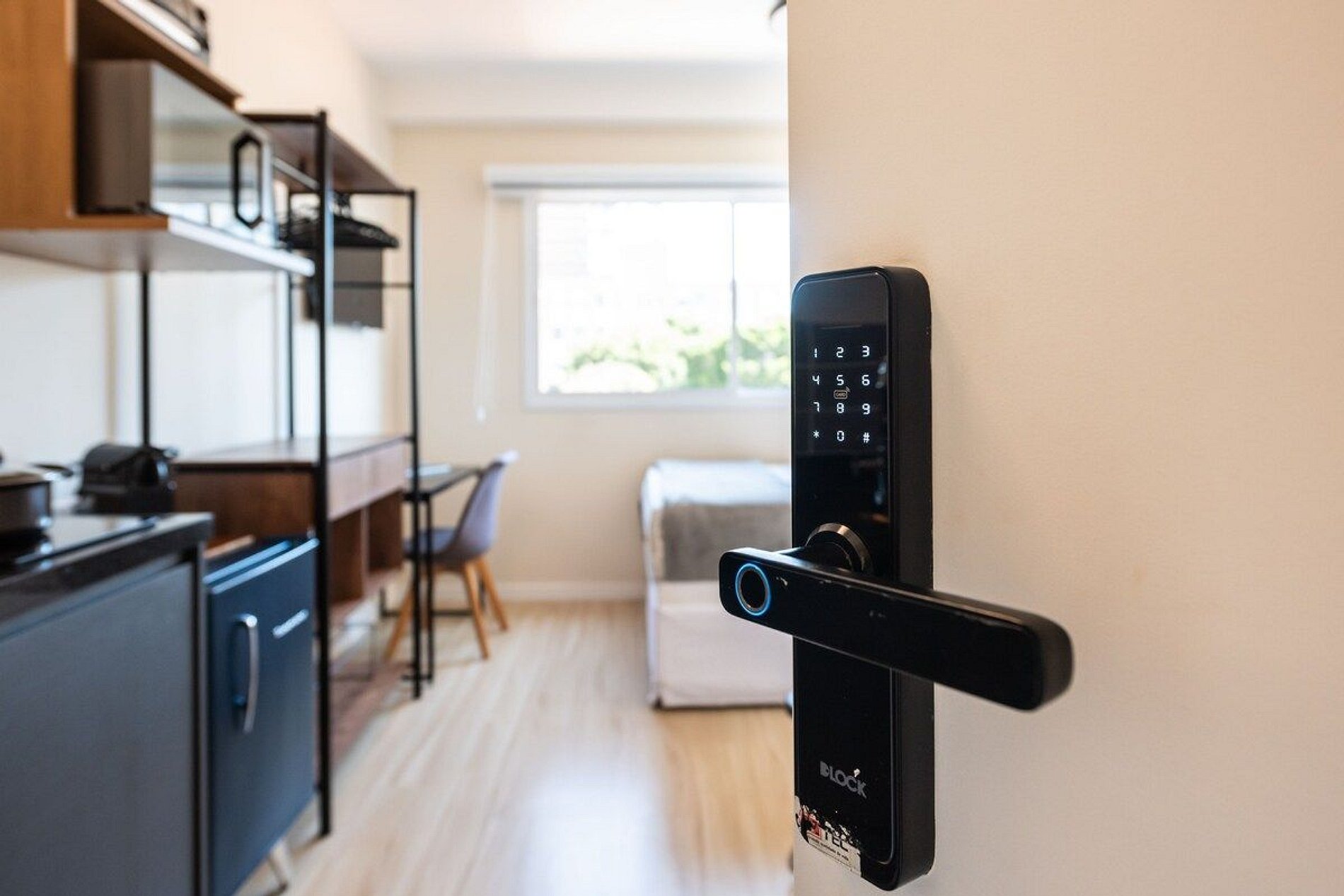 O hospede tem acesso a lavanderia Queen Speed localizada no prédio, academia e coworking.