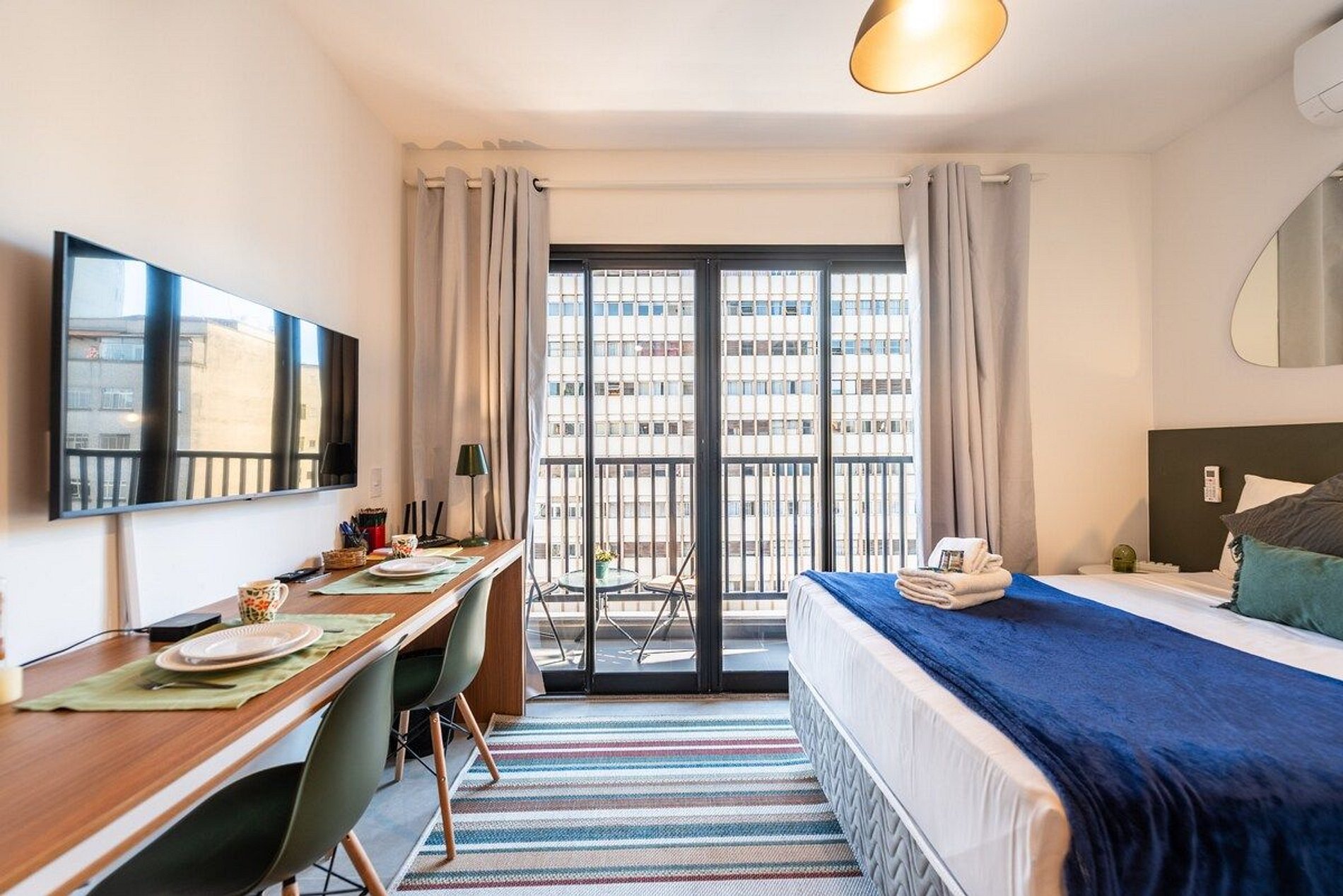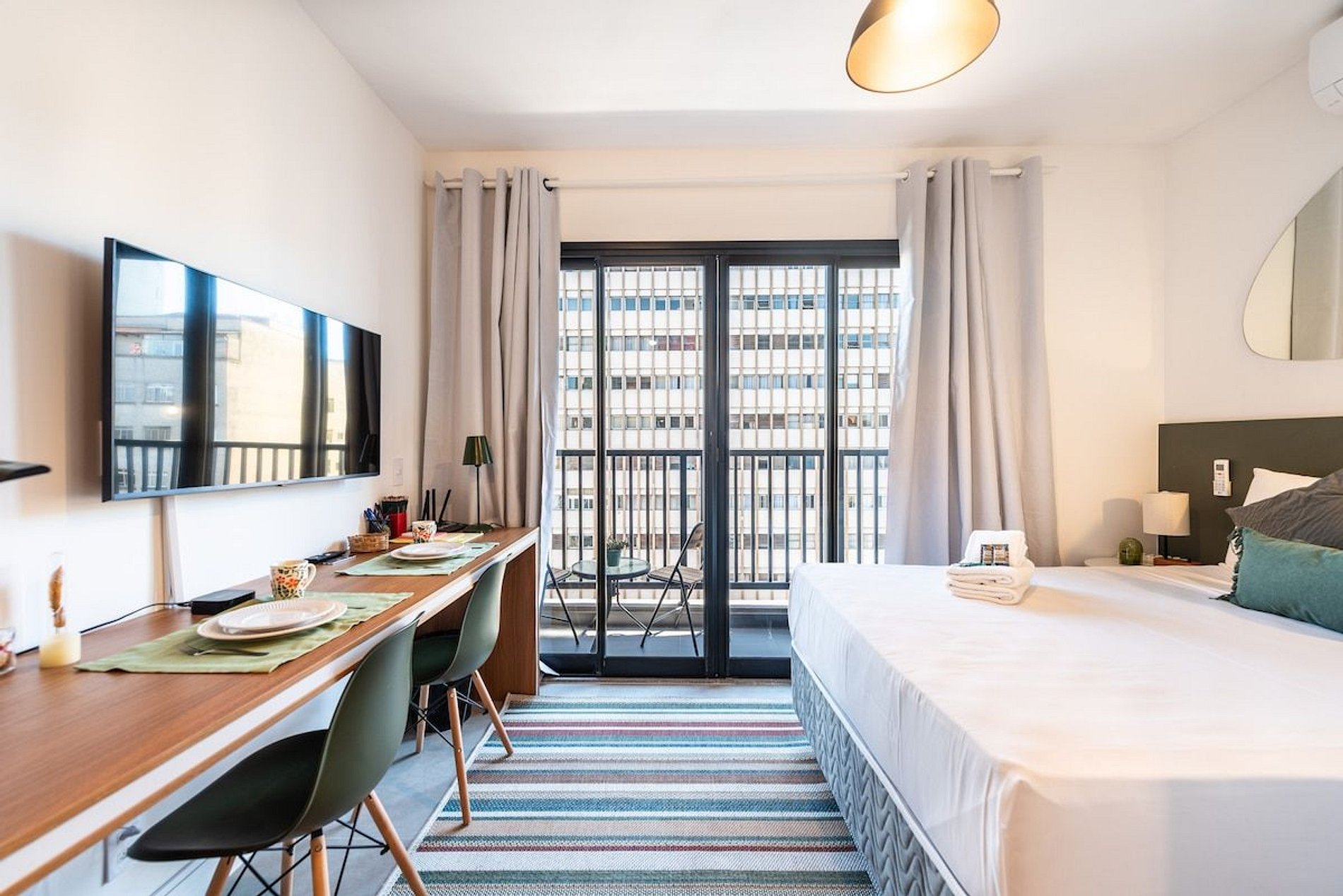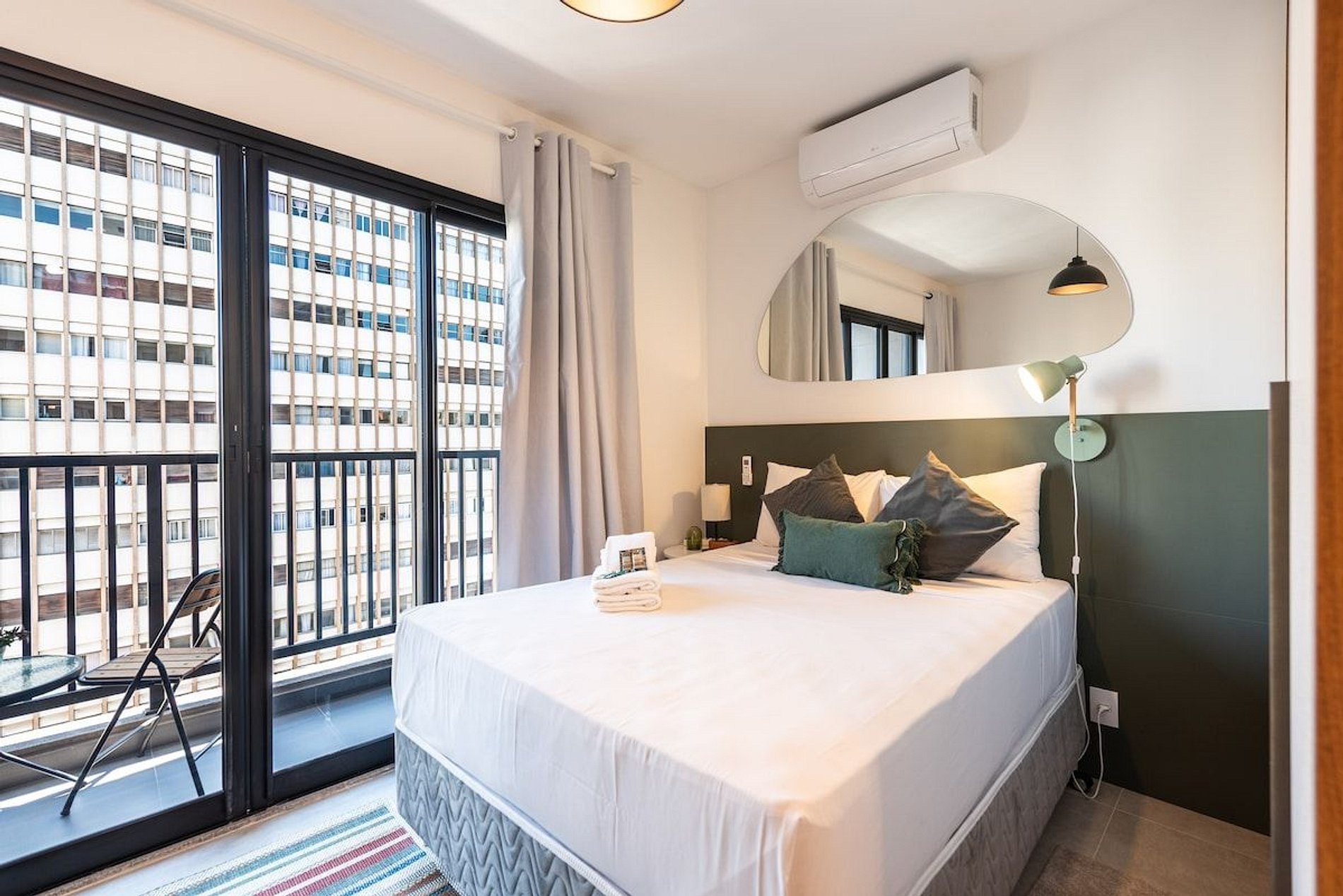 - Apto equipado com itens para o dia a dia; - Móveis novos, modernos e funcionais; - Cozinha completa; - Cama confortável, ideal para uma boa noite de sono; - Banheiro com amenidades e chuveiro potente, garantindo conforto; - Internet de alta velocidade; - TV; - Escrivaninha. Destaques do condomínio: - Piscina no rooftop; - Lavanderia compartilhada; - Academia; - Excelente localização, próximo a estações de metrô, restaurantes, bares e comércio no geral.