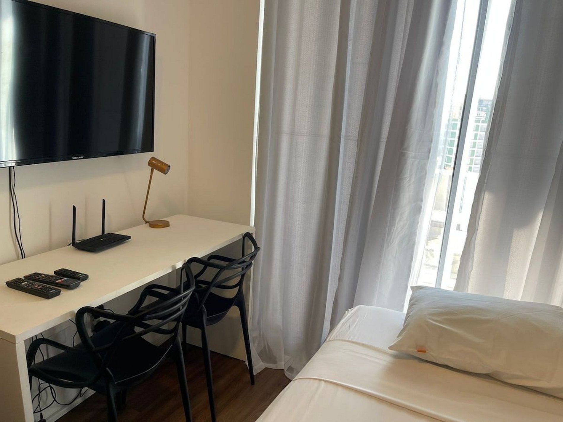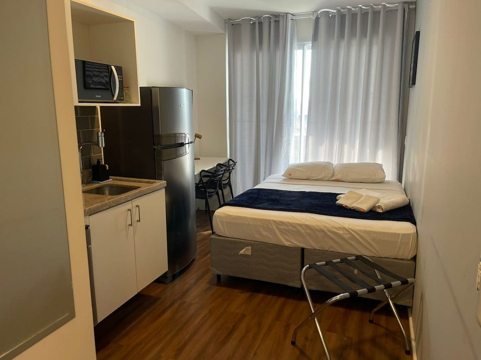 Bem-vindo ao seu studio completo no coração da cidade! Localizado no Centro de SP, você estará rodeado por história, cultura e a vibração autêntica do centro de São Paulo. O espaço é compacto, moderno e equipado com tudo que você precisa para uma estadia confortável e uma vista urbana que conecta você com o ritmo da cidade. Condomínio com infraestrutura completa, para o conforto do hóspede, contando com diversas áreas comuns. Hospede-se com praticidade, estilo e a cidade inteira ao seu redor! O espaço conta com: ✔️ Cama queen confortável ✔️ Cozinha equipada com utensílios para preparar refeições ✔️ Internet Wi-Fi ✔️ Smart TV ✔️ Ambiente climatizado e bem iluminado Portaria 24h, áreas comuns liberadas para uso do hóspede: ✔️ Piscina ✔️ Coworking ✔️ Academia ✔️ Lavanderia Estamos disponíveis para qualquer dúvida ou ajuda via chat da plataforma Airbnb. Horário das 8:00 as 20:00 horas. Ideal para quem vem a trabalho, turismo ou apenas quer explorar São Paulo a pé. — A poucos passos do metrô Sé, Catedral da Sé, Pátio do Colégio, e com fácil acesso à Avenida Paulista, Liberdade e muito mais.